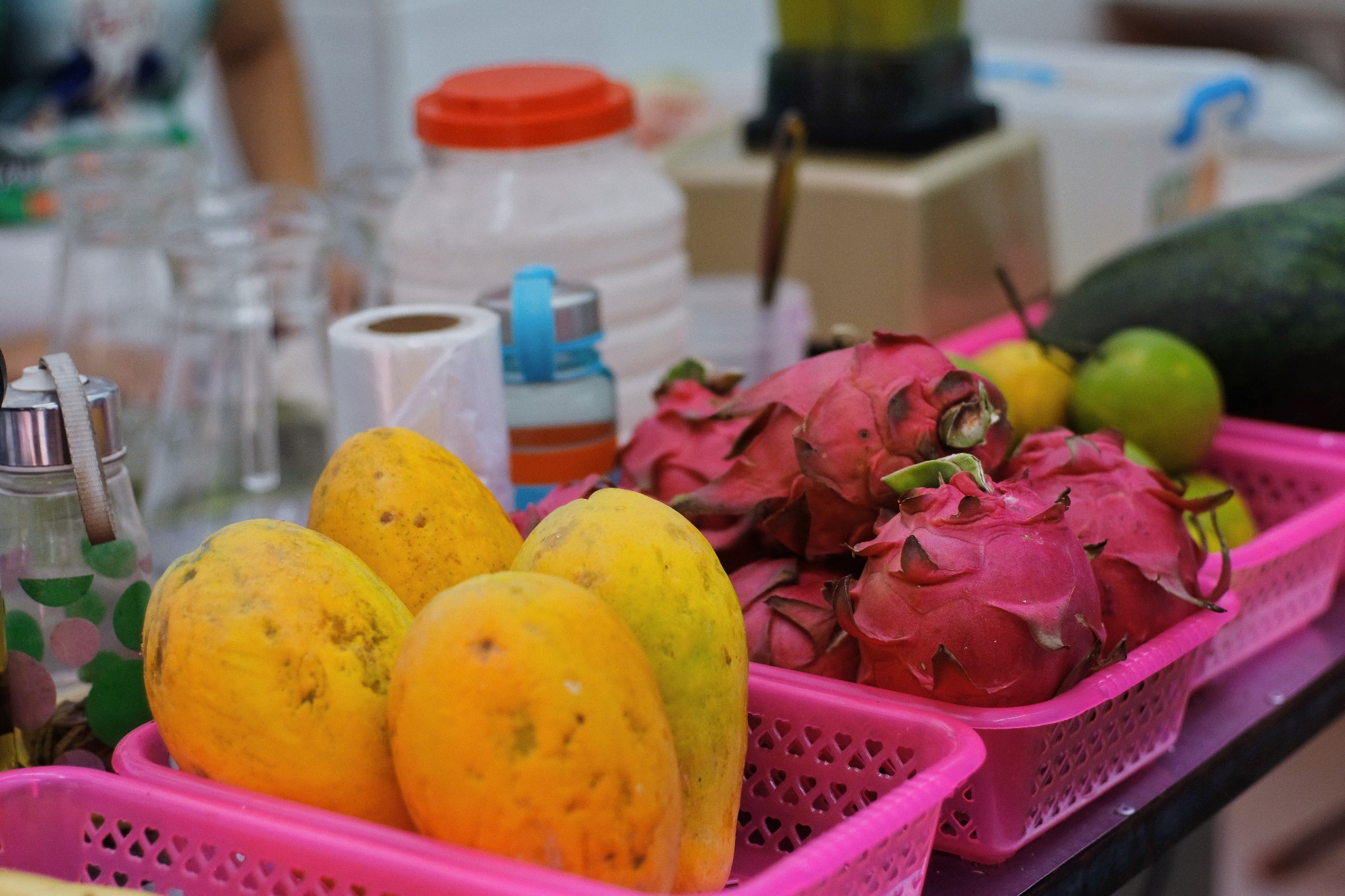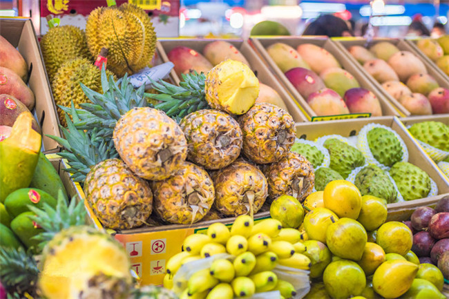 第一市场汇集了各色 的水果、 的水果种类也很多例如、椰子( 海南 的特色)、芒果、荔枝、番石榴、菠萝木瓜、香蕉、西瓜、杨桃、龙眼、莲雾、榴莲、火龙果、菠萝蜜。
