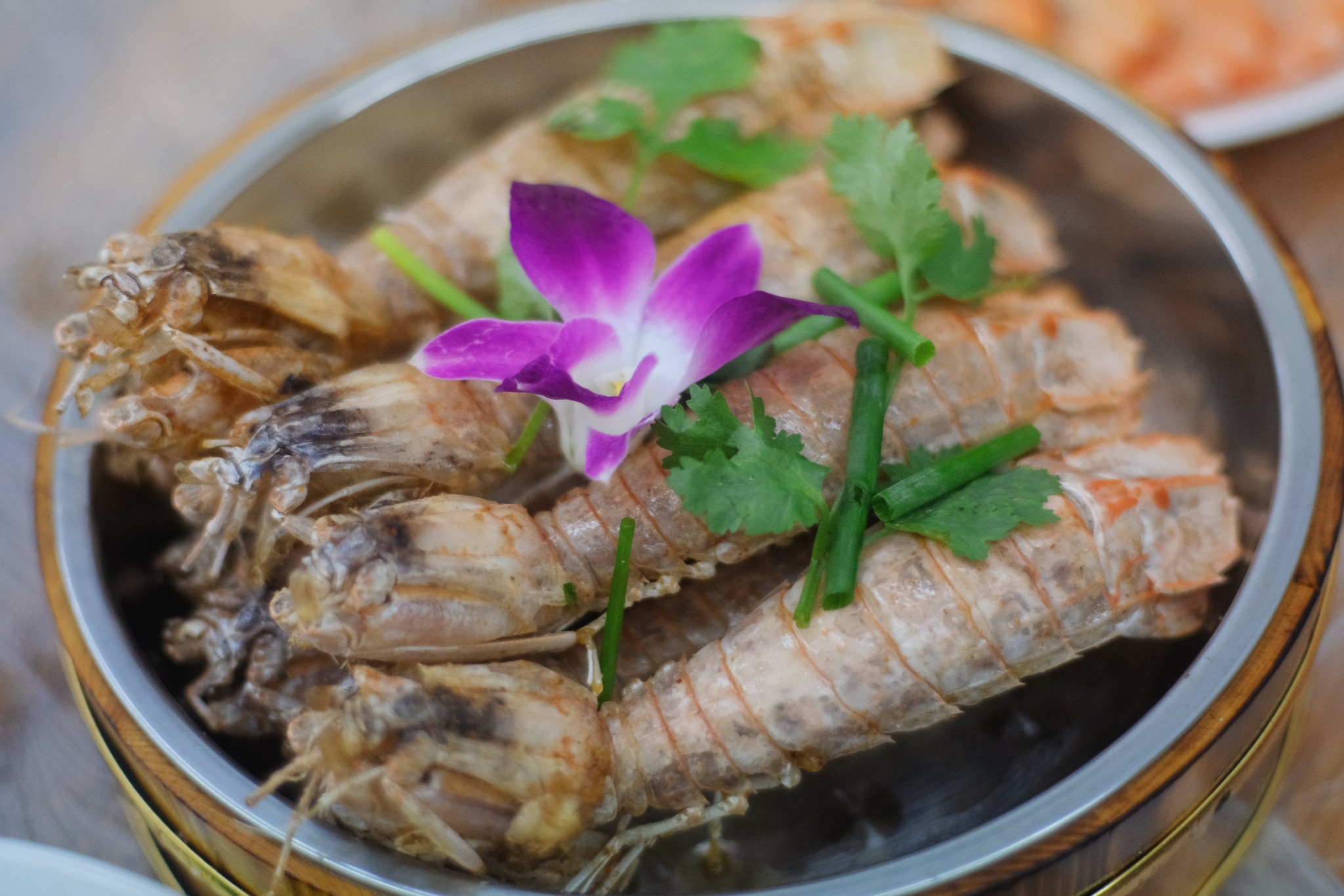 虾虾家族则是组团出战!新鲜的竹节虾,白灼就足够了!别以为白灼很简单,其实相当考验厨师的功夫!要控制好火候,虾一变红马上捞起,这样才能保证虾肉弹牙,虾味十足!