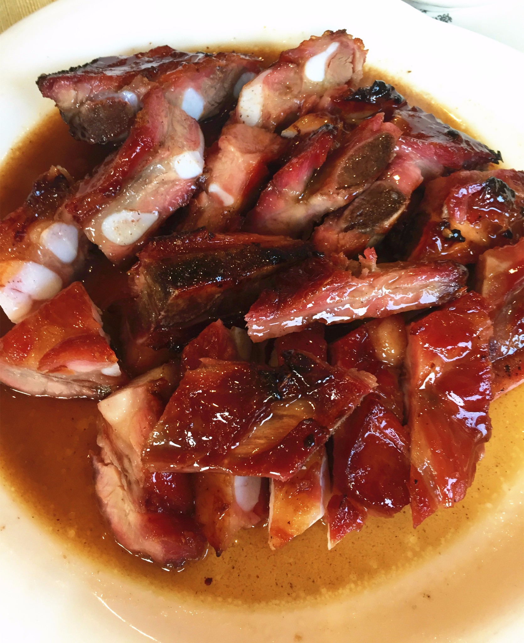 一放入口中,香味无比惊艳,有诗形容烤乳猪“入口则消,壮若凌雪,含浆膏润”。隔着屏幕大家可以感受一下脆、香、嫩的烤乳猪美味。猪肉中带有淡淡的果木味,据说以荔枝木,龙眼木等水果树的木炭为上品,烤出来的乳猪更香。 吃烤乳猪,蘸料的作用是不可或缺的。这种特制的蘸料里有盐、白糖、姜蒜茸等,吃起来甜酸可口开胃,很好地中和了猪肉中的腻味