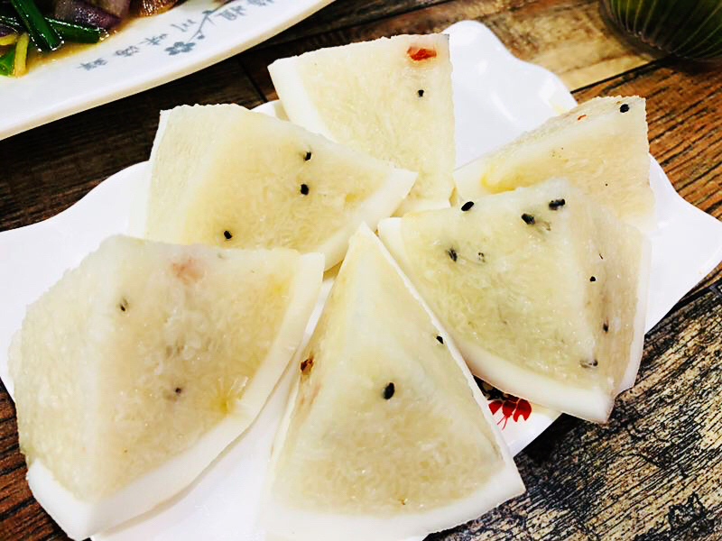 泡萝卜,色鲜质脆,酸中带甜,和肉类的火锅搭配着吃,很是开胃解腻。这粉嫩的色泽可不是什么色素,而是 海南 原产的红糯米汁,纯天然的食材,诠释了绿色养生的理念