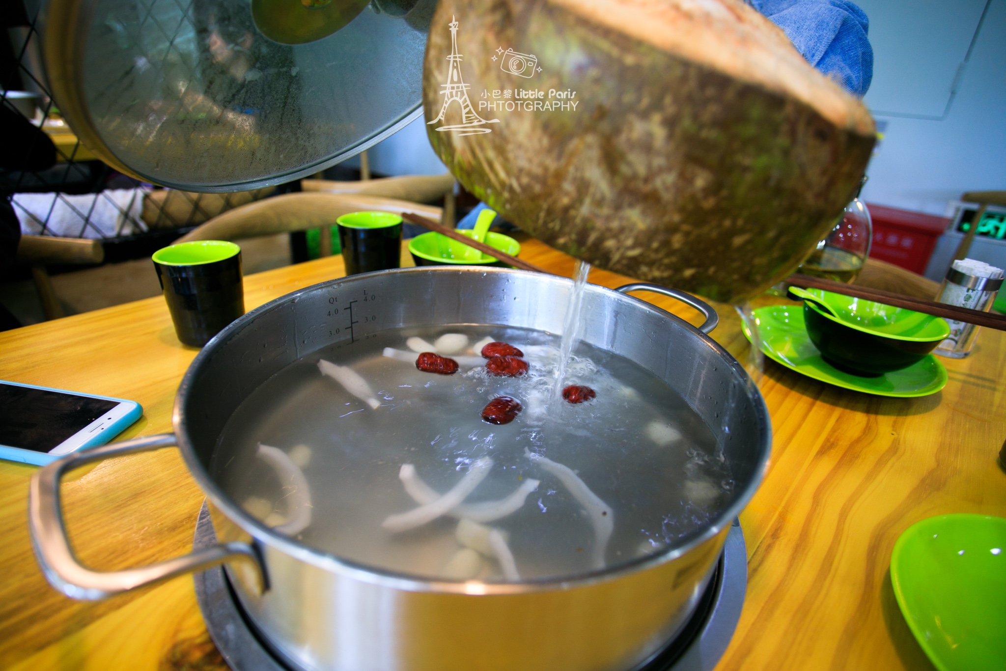 15.椰子鸡火锅第三次来 ,第一次吃椰子鸡火锅。锅底是用椰子水做成的,味道有一点点甜,不过能接受的。
