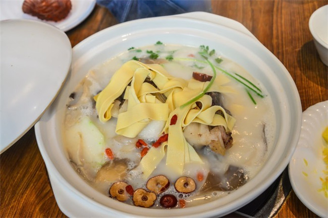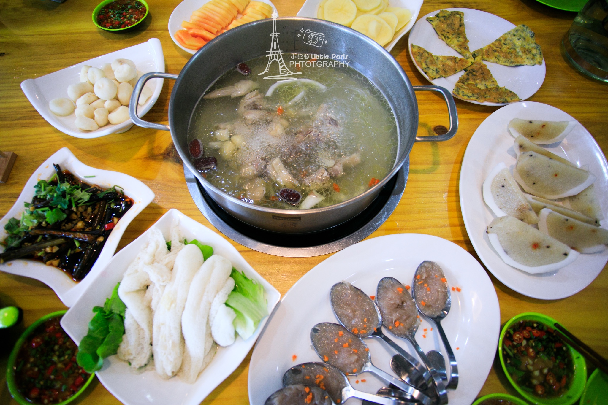 地址:团结街108号 独一味牛排汤锅 (靠近胜利路蓝天购物广场)海南菜海南 酸笋煲,非常地道的本土菜肴,充满浓郁的乡土气息。我家中一位兄长常年工作在省外,每年过年回 海南 ,都要狠狠吃上几天这道菜。以前我不理解地问:好吃得有那么夸张吗?他说:好吃只是一个方面,我留恋的是酸笋煲里的家乡味道酸笋煲的主要食材是竹笋、芋头梗和海螺,放在砂锅中煲煮。竹笋是 海南 山岭热带雨林中野生的竹笋,置于容器中经天然醋酸菌的发酵,便形成具有独特的笋香味的“酸笋”。 而芋头梗, 海南 话叫做“黑横” 。在其他地方,芋头的经济价值只是体现于根部即芋头,其梗部则扔掉或当肥料。可在 海南 ,芋头的梗能做成美食,代将收获芋头后的芋头梗剥去外皮纤维,在 日光 下晒半干,腌成风味特独的酸芋头梗。与酸笋一样,“酸芋头梗”可炒可煲汤。这两种酸食一起使用,起着互相增香增鲜的作用。无论是清炒还是煲汤,加海螺、河螺或其他海鲜,汤味相当鲜美