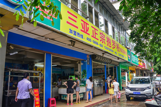 说完了 海南 粉,再说下图的腌生面,也叫做腌伊面。看上去和 海南 粉别无二致,因为配料和卤汁是一样的,区别在于基质。 海南 粉的基质是米粉,而腌伊面是用一种面条做的,这种面是油炸的鸡蛋面,形状也很细,但口感上比 海南 粉要韧一些鲜榨果汁炒冰果汁和炒冰,本来是两种东西,在这里却是同一种物质的两种状态,还可以相互转换。秘诀就在于这个机器:炒冰机。锅下面不是火,而是一种强力制冷的机器,使温度瞬间降到零下40摄氏度左右,把液体倒在锅里,用木铲不停地翻动,液体受冷逐渐粘稠成为冰泥。在第一市场,炒冰随处可见。 天气长期炎热,加之热带水果出产众多,水果炒冰也就应运而生。越是本土味正宗的小吃,位置往往越是低调。这家店隐匿于一家巷子,虽然距离 市区的主干道很近,但却在很窄的支路上。店内环境却十分雅致,这样的环境在小吃店中还是不多见的地址:外贸路四巷15号。巷香聚 海南 粉。位置不是太好找。一般是先到知名度很大的吉祥街,找到吉祥街和铁道中路(俗称老火车道)的交叉,这里就非常接近了。问一下路“外贸路四巷”,从巷口直走即到。鲜榨果汁炒冰果汁和炒冰,本来是两种东西,在这里却是同一种物质的两种状态,还可以相互转换。秘诀就在于这个机器:炒冰机。锅下面不是火,而是一种强力制冷的机器,使温度瞬间降到零下40摄氏度左右,把液体倒在锅里,用木铲不停地翻动,液体受冷逐渐粘稠成为冰泥。在第一市场,炒冰随处可见。 天气长期炎热,加之热带水果出产众多,水果炒冰也就应运而生。