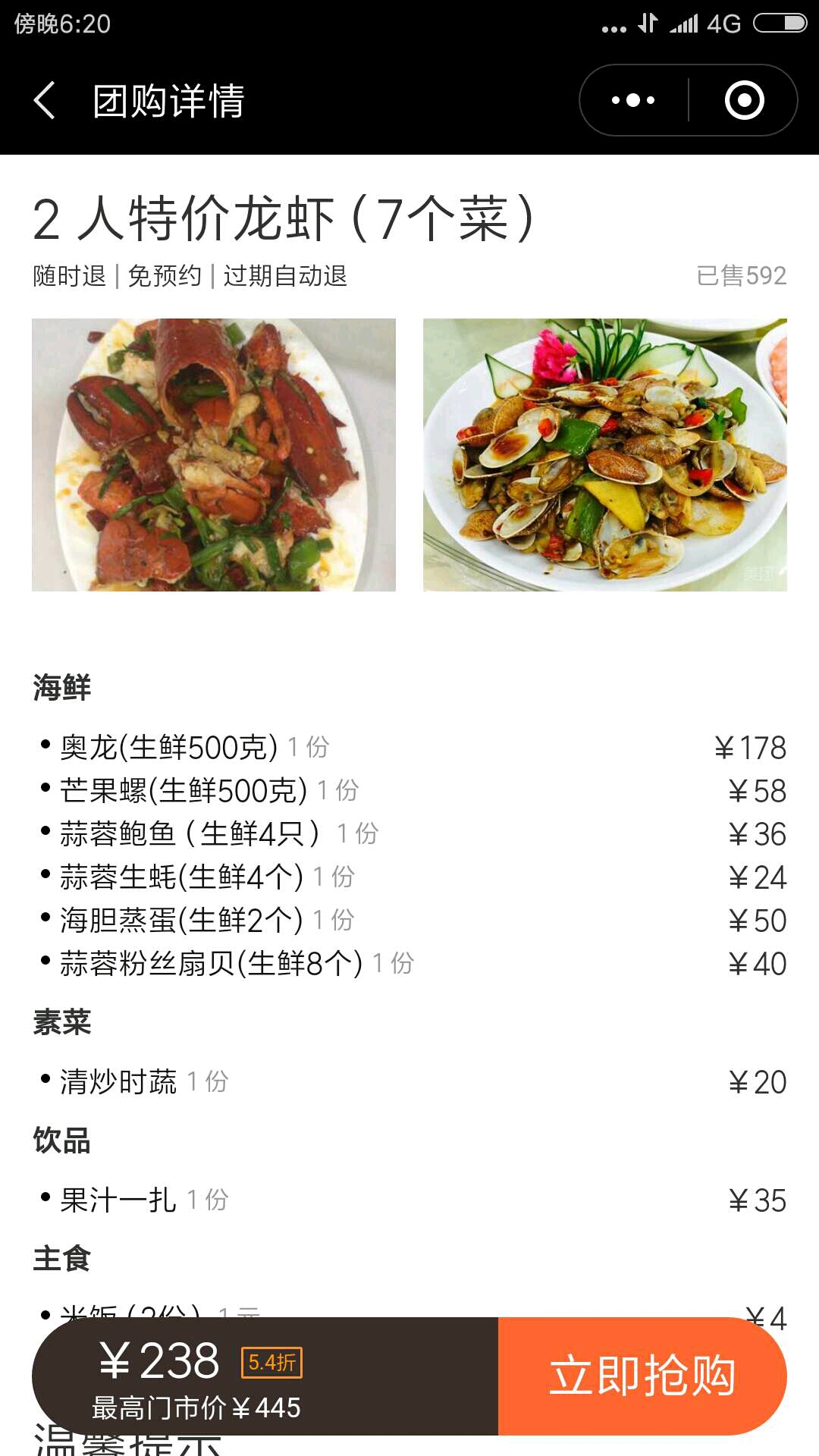 味道可以说是特别喜欢了,吃了多次,推荐芒果螺、椒盐皮皮虾、清蒸东星斑还有花蟹煲粥。最爱椒盐濑尿虾皮炒的酥脆,肉很紧实鲜美。红花蟹香辣和葱姜都尝试了,还是最喜欢香辣的做法。川味也做得很好,酱香浓郁,名不虚传。四大一小,海鲜买了四百多,加工费近两百,这在吃到新鲜的海鲜真的很划算。后面住的时候也是去的林姐家,环境更好了而且免费接送服务,真心推荐!已经推荐给身边朋友了。