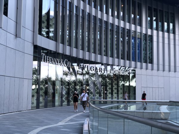 B区外墙可以看到蒂芙尼、宝格丽以及万宝龙的品牌LOGO