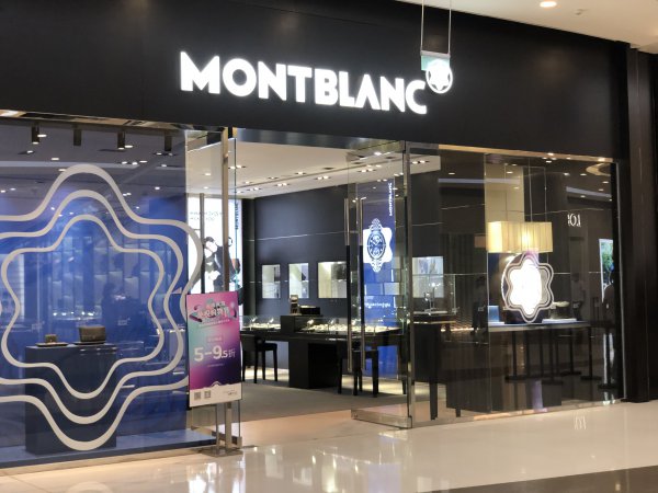 万宝龙品牌展柜(门口展牌写着部分商品5-9.5折)