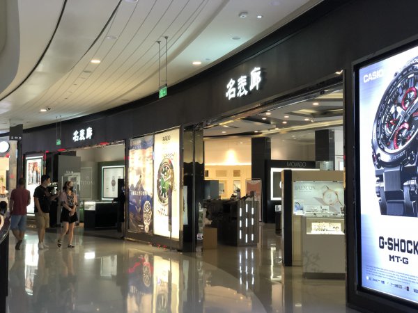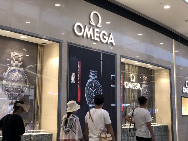 欧米茄位于B区的店铺,人流量相对大一些我们走访了几个店铺,其中欧米茄、天梭、浪琴和美度这几个品牌的消费者还是挺多的,这可能与这几个品牌在国内的认可度、以及更符合大部分国人的消费水平等因素都有着不可或缺的联系。