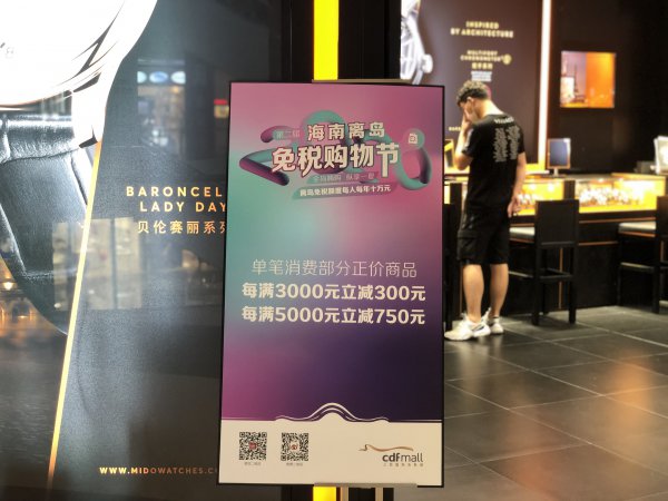 二楼的美度人流量也不少知识点三:在海南免税城买表究竟便宜多少?这个问题可能是大家点进这篇文章最关注的问题了,我们专门问了免税店的工作人员。可以举个这样的例子:一枚售价在9600元左右的汉密尔顿卡其系列在免税城的售价为8000元,并且你还可以享受免税城现在的活动,满5000-750的活动。按照柜姐的说法:一般来说免税的腕表是要相对于公价便宜百分之二十。