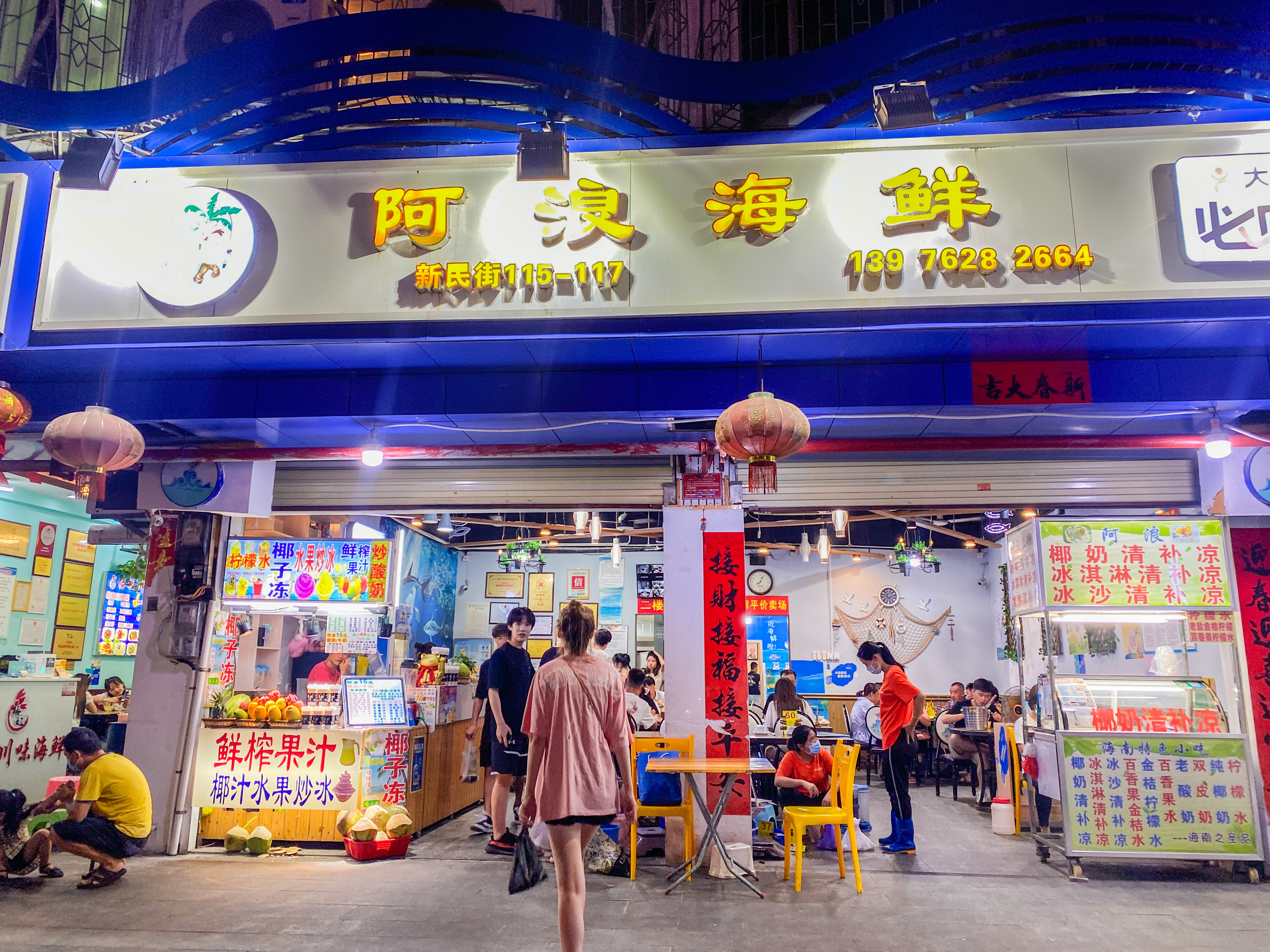 阿浪海鲜如果要问哪个海鲜市场性价比高,答案应该是一样的,你要么带个本地人去,要么做好攻略再去,这家店在第一市场附近,也算比较大,但总体味道属于中等。蒸石斑的时候一定要交代,不要蒸老了,吃了几次,只有一次没有老。辣炒一般选择芒果螺,肉比较多。这家味比较淡,辣味不足打汤选择海白, 海南 第一汤——海白冬瓜汤。