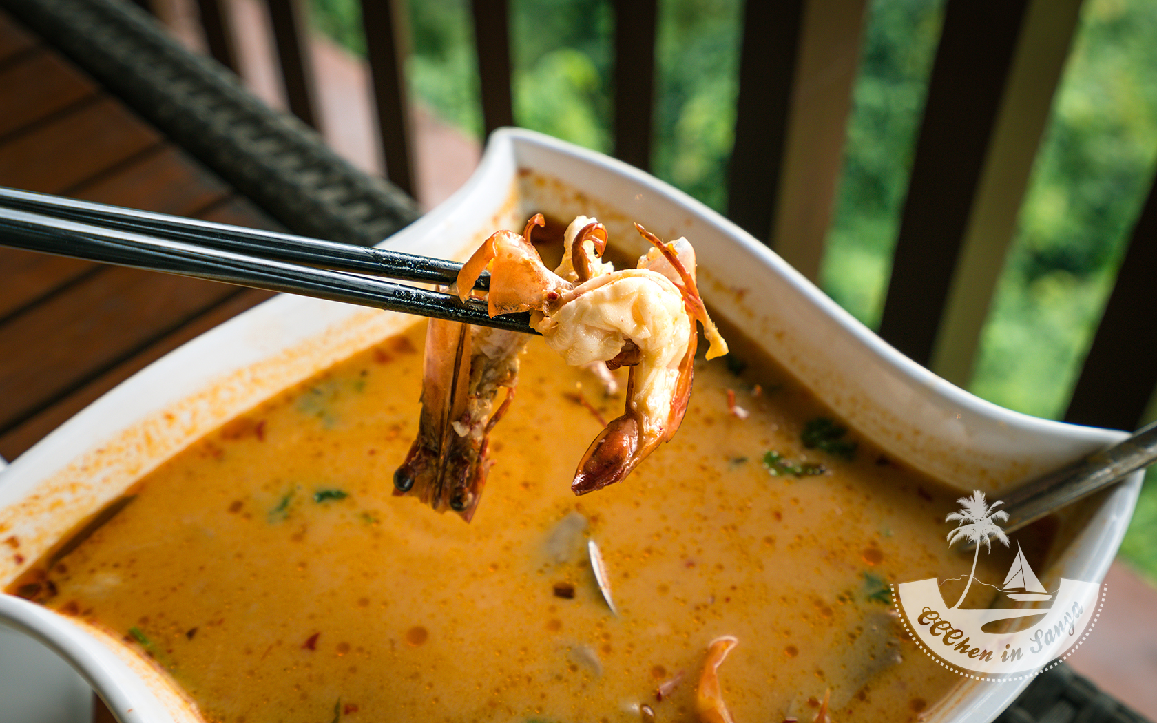 冬阴功汤。对,说到这个~冬阴功汤名字的来历是因为,在泰语里,冬阴是酸辣的意思,功是虾的意思。所以,其实冬阴功汤翻译过来,是酸辣虾的意思。哈哈哈哈,是不是瞬间low了好多?~