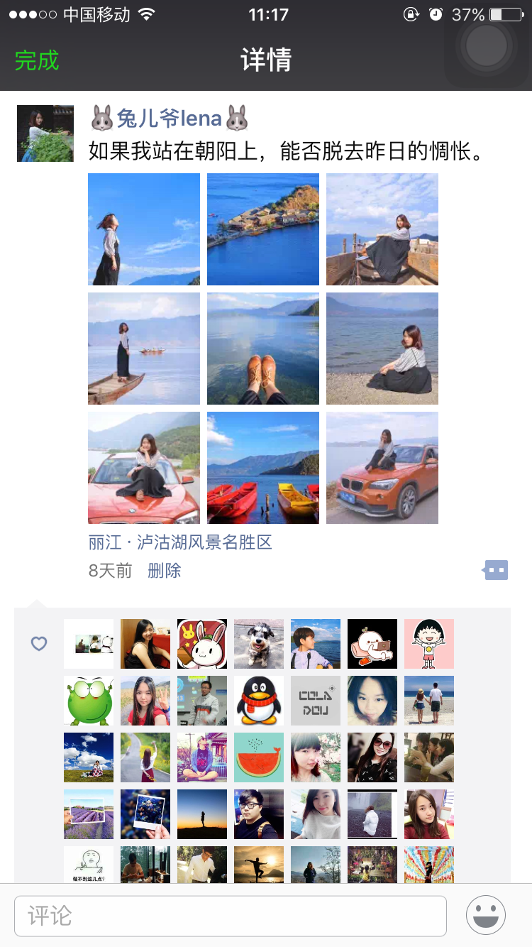 对于旅行中如何晒出高逼格的朋友圈,小弟有如下看法:1、照片一定要加滤镜!滤镜!滤镜!2、搭配图片的文字要简短精炼(逗逼风、文青风、嘻哈风等),切记不要长篇大论。3、文字编辑中搭配合适且可爱的表情,会加分哦!4、最好有事先搭配好的格式(5人像4风景、6风景3人像等等),我一般喜欢把最中间的图设置...显示全部