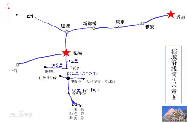 理塘 - 香格里拉 镇( 理塘 到 稻城 县(金珠镇)120公里, 稻城 县城到