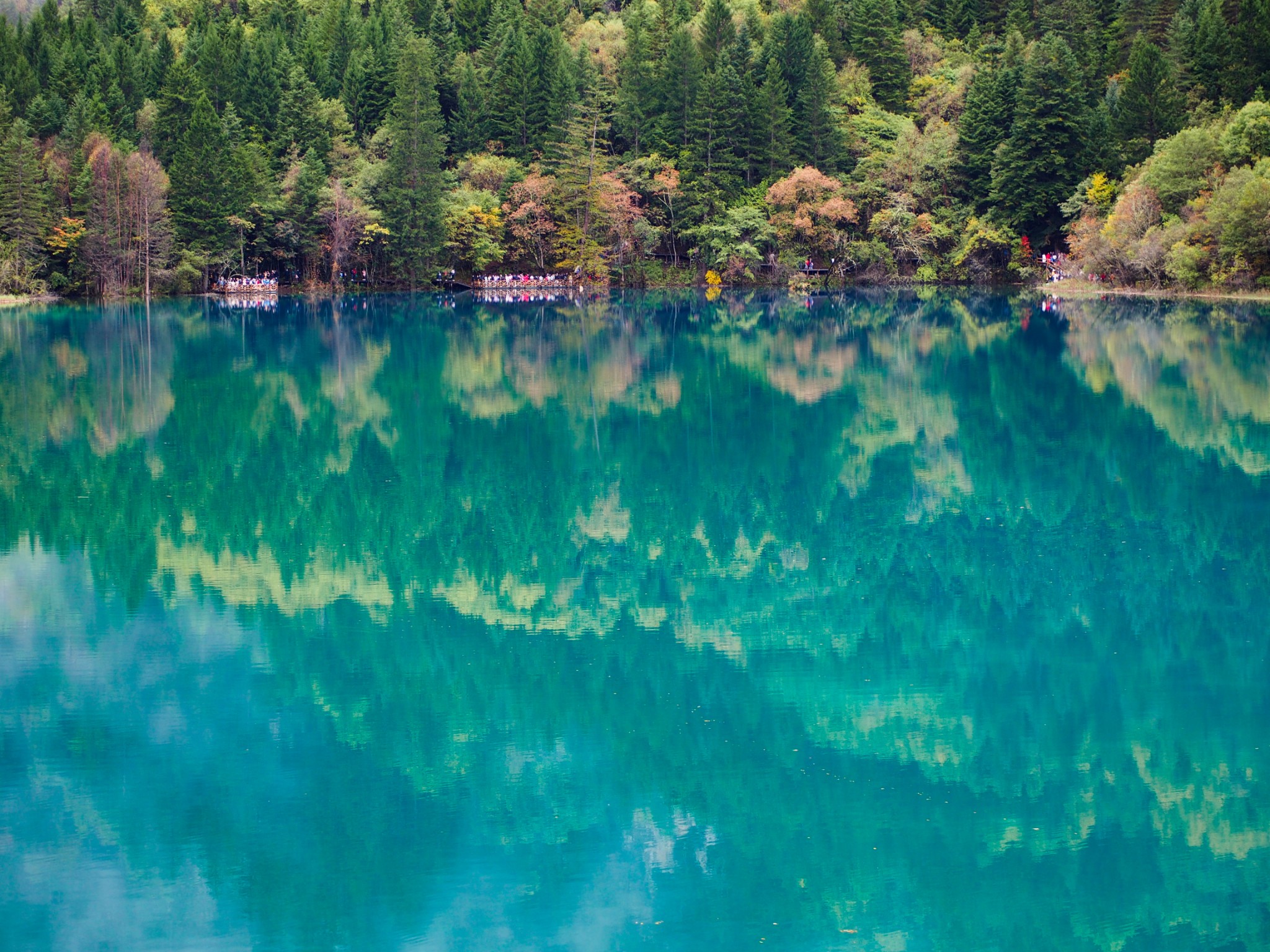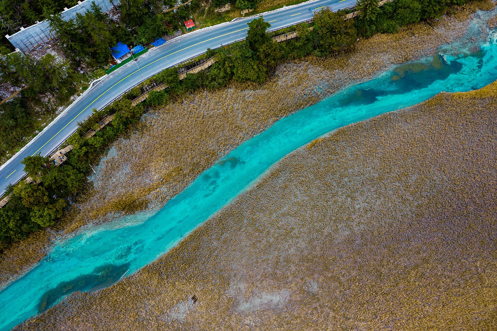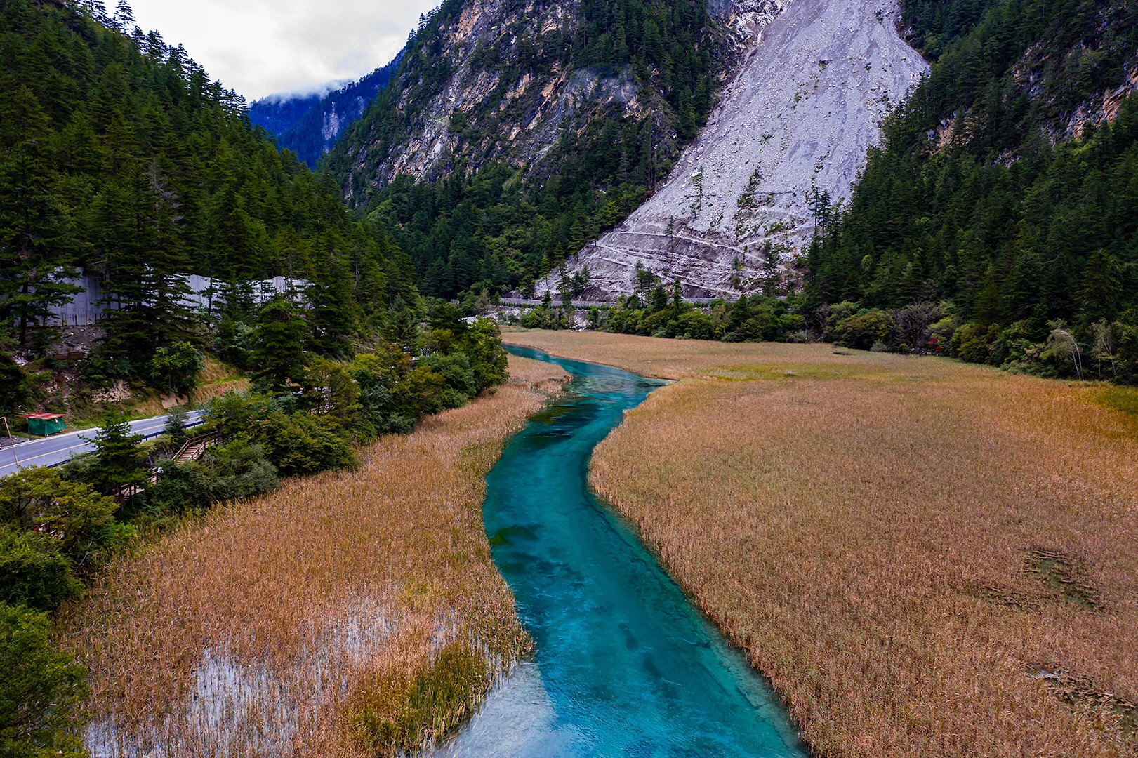 芦苇海五花海位于 九寨沟 的日则沟中段,水面呈现出五颜六色。环绕海子的西侧栈道是绝佳欣赏点之一,其的终点便是五花海的出水口与孔雀河的交接处,深秋时节,这里是彩叶最集中的区域。而网上盛传的最佳拍摄机位---老虎石,我们却因行程匆忙未能找到。