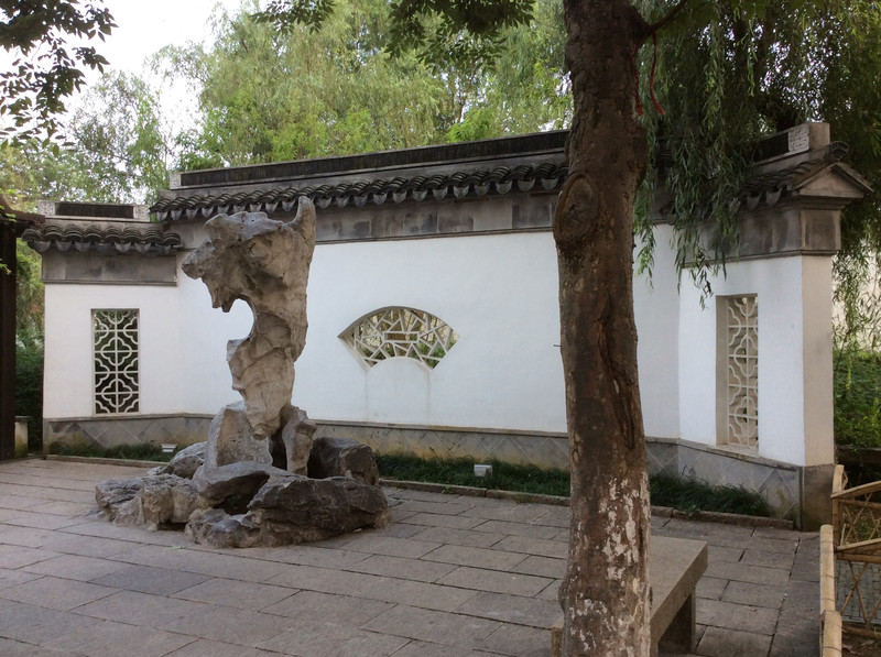 中庭,是住宅向花园的过渡。庭院以坐春望月楼为主体,楼的东部有一座名为“览胜阁”的不规则五角形楼阁。无论坐在中庭的哪个位置都可以饱览园中四季景色。