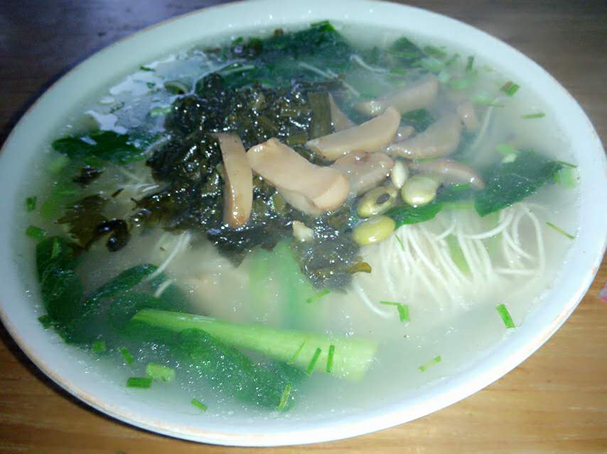古镇万船娘老饭店的阿婆面,面的口感很有韧劲,浇头雪菜和不知名字的豆子,味道都很好,而且价格便宜分量大。可惜这次她家并没有开门。阿婆是一个很健谈的人。我想我怀念的不仅是它的味道,还有她给当时独自旅行的我的那份温暖。