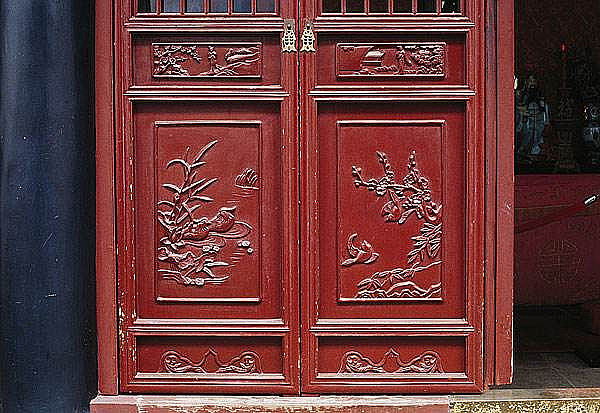 从正厅到后楼,可看到前低后高的结构,有“连升三级”之意。后楼正厅置6扇落地长窗,长窗裙板雕刻《西厢记》的戏文。前楼底层长窗上刻有《红楼梦》12金钗10幅。后楼的东西步柱檐柱之间刻有“福禄寿喜”;东西五架梁下的隔窗刻有“八仙图”、“琴棋书画”、“漁樵耕读”等图画。