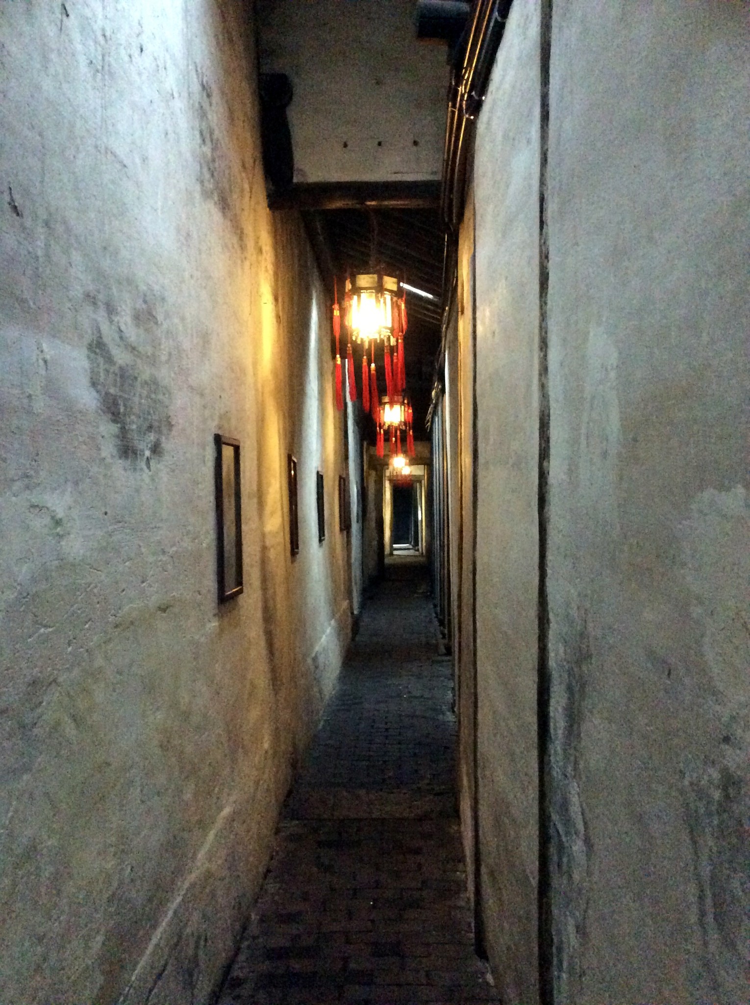 古镇三进大厅的东侧,有一条幽暗深长的陪弄。以前的正门只有婚丧喜庆、贵宾来访时才会打开。日常的进出都是走陪弄。