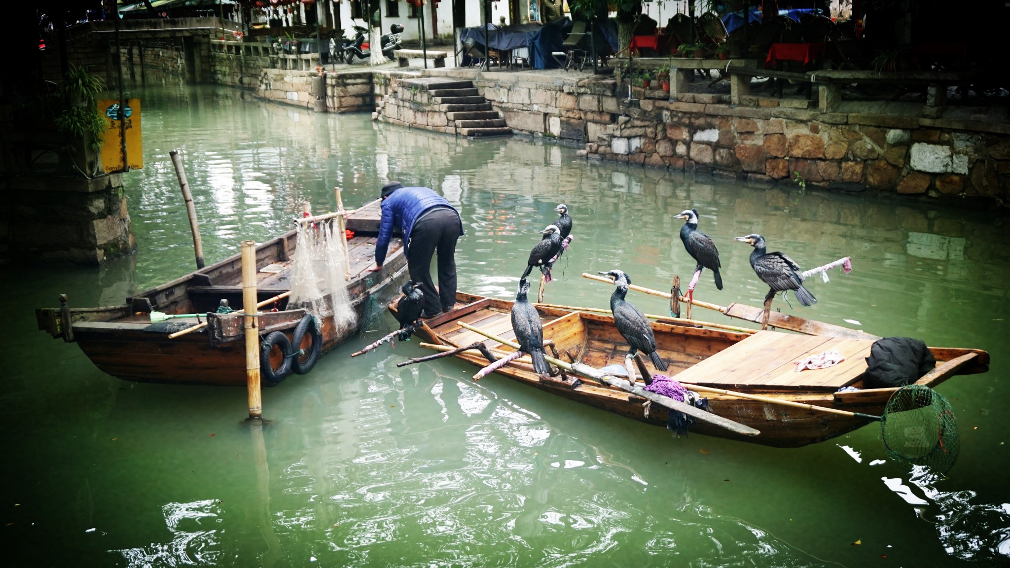 古镇的小网红们,很可惜看不到鱼鹰们捕鱼的情景。