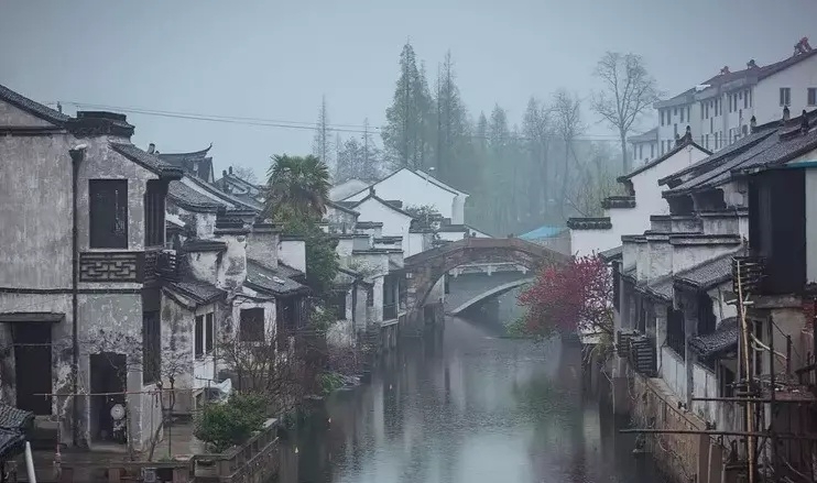枕水而居,镇上房屋多临水而居,白墙黛瓦倒影在水面上,形成了一副水墨画。