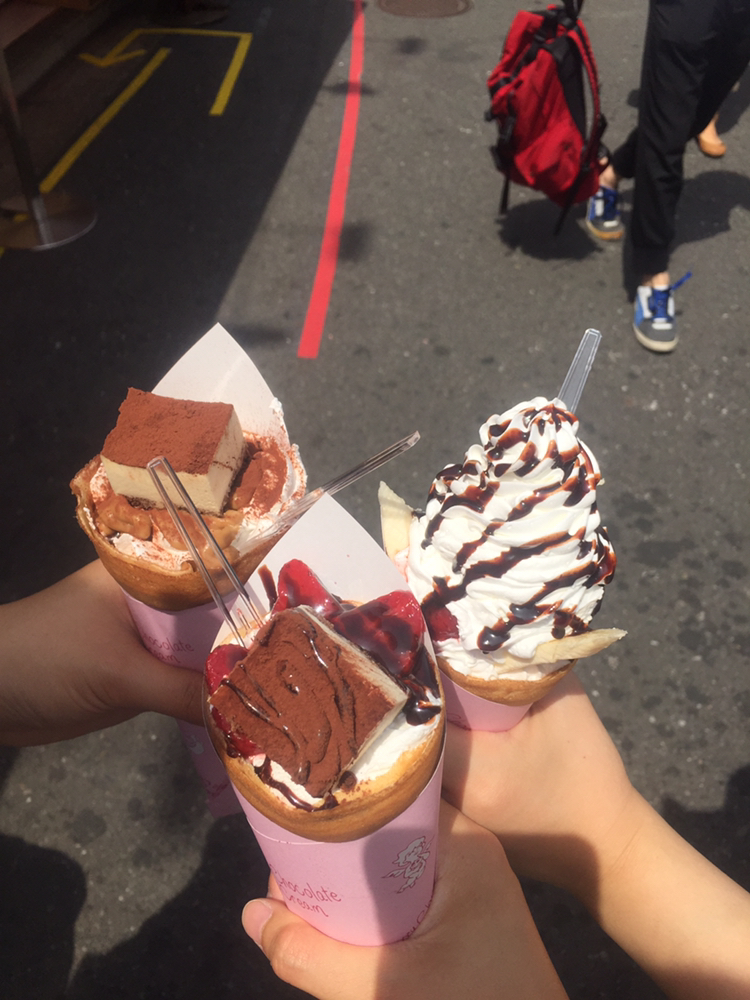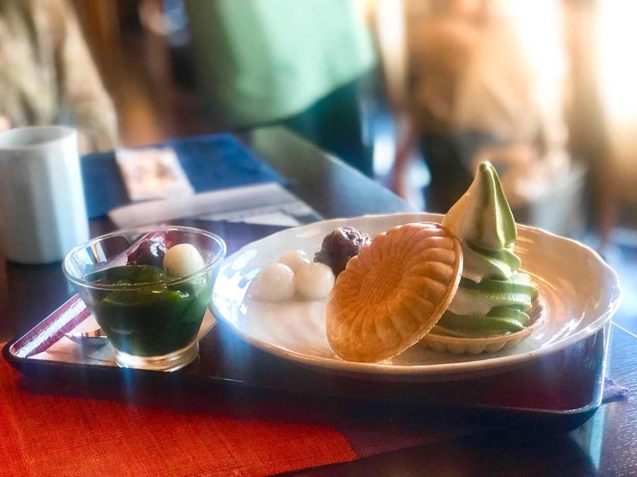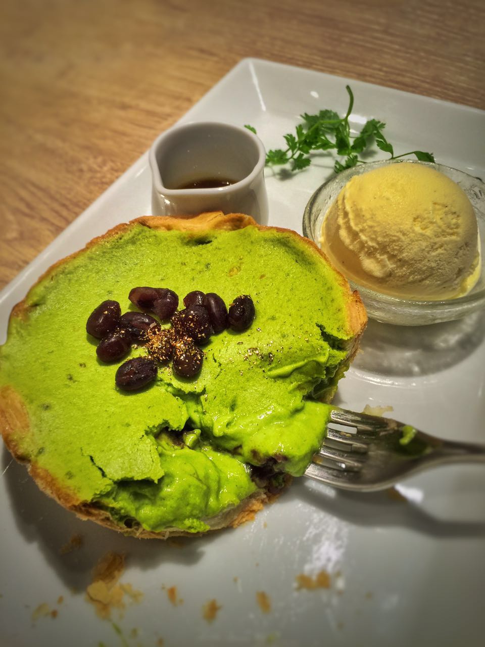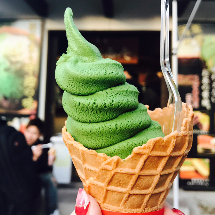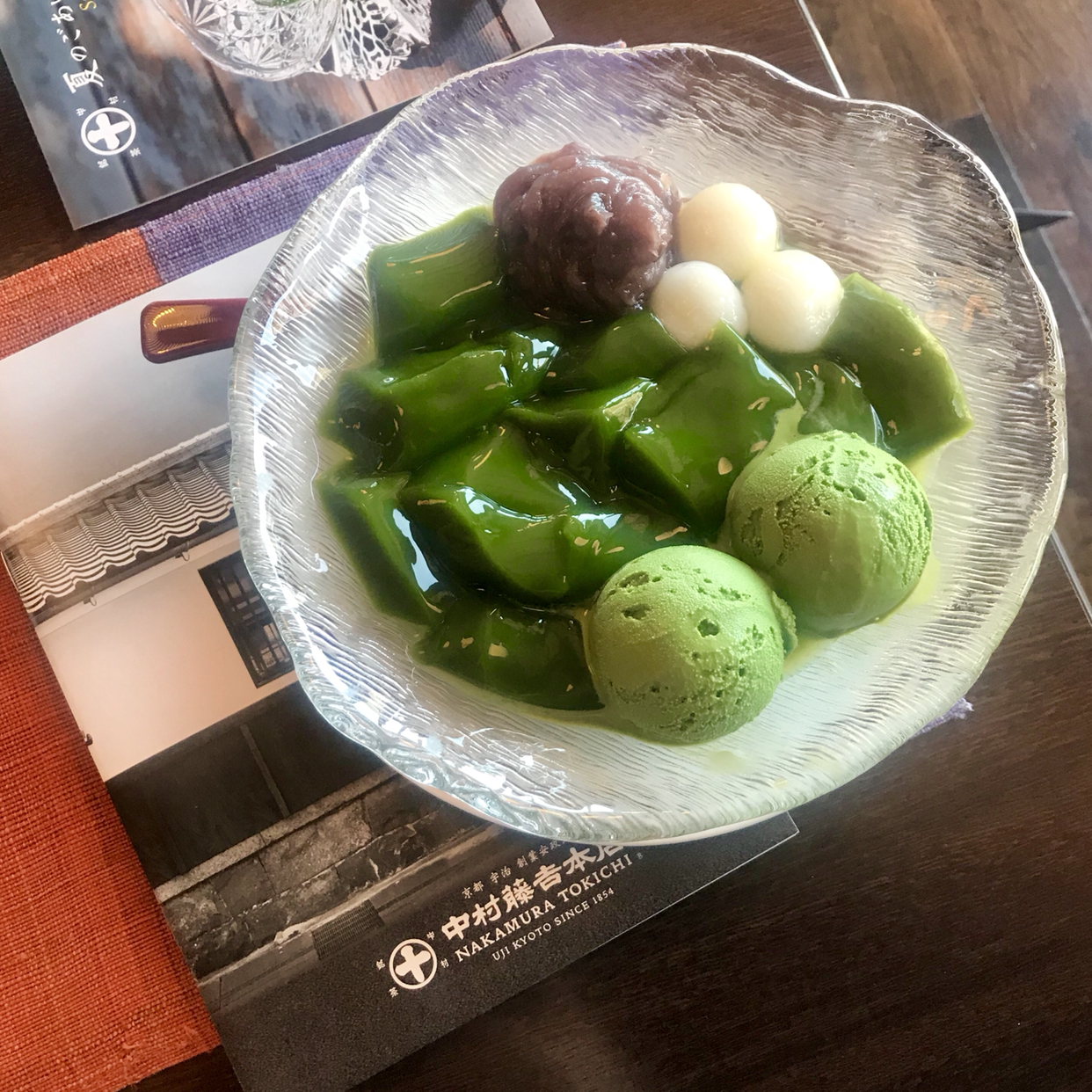 记不太清了,大概是50块左右一个这样的冰激凌,超级大份,首先三块抹茶巧克力就有很浓郁的抹茶味道,跟ROYCE生巧口感差不多,然后旁边还有一堆红豆沙,甜甜的一点也不腻,底部是抹茶冰激凌,像是泥一样的吃起来很充实。再加上有些脆片在底部,冰冰凉凉的加上脆皮口感更佳!