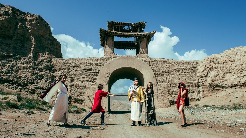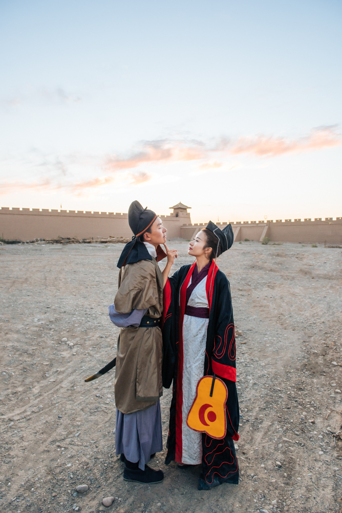 一下车就跑步进入景区,在这高温缺水的戈壁也是够拼的,期间很多窃窃私语的阿姨和大叔,还偶遇四个日本游客为我们鼓掌喝彩,我和小强大学主修动漫,没走上专业道路,当做爱好保留下来。我们的自娱自乐的精神打动了日本游客,也可能会被大家视为疯子,又有什么关系呢,开心就好。