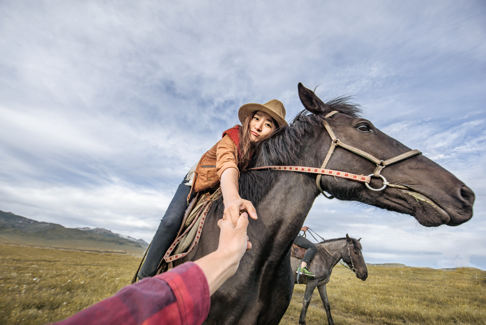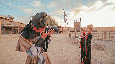换上特意准备的道具,放牧的阿妈说我们:“城会玩!”