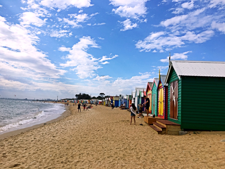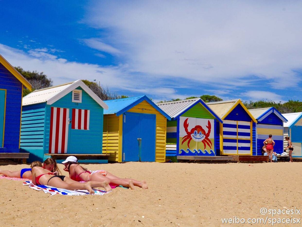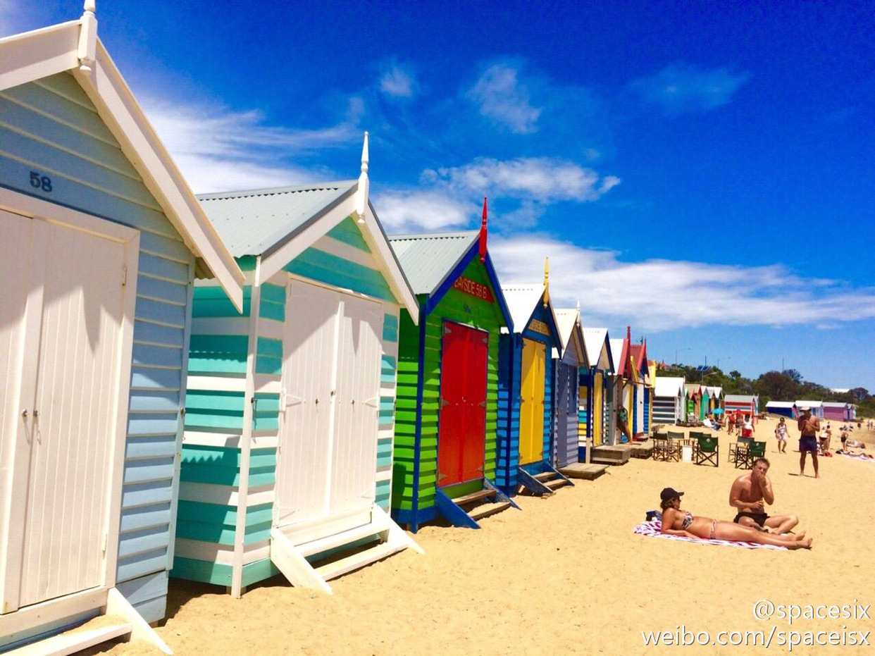 很多很多彩色小房子的海滩……