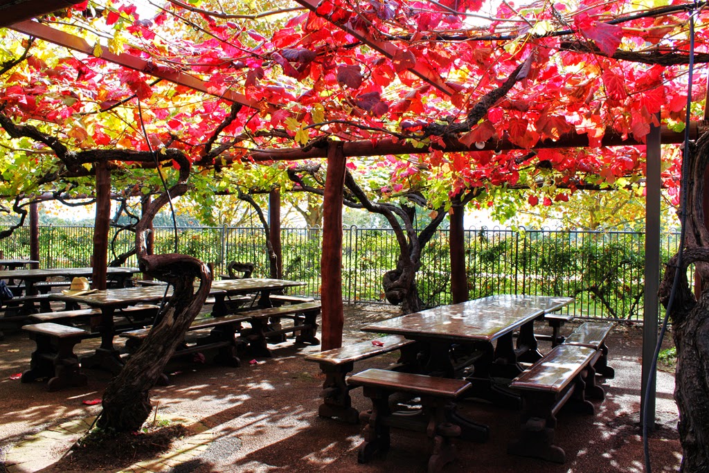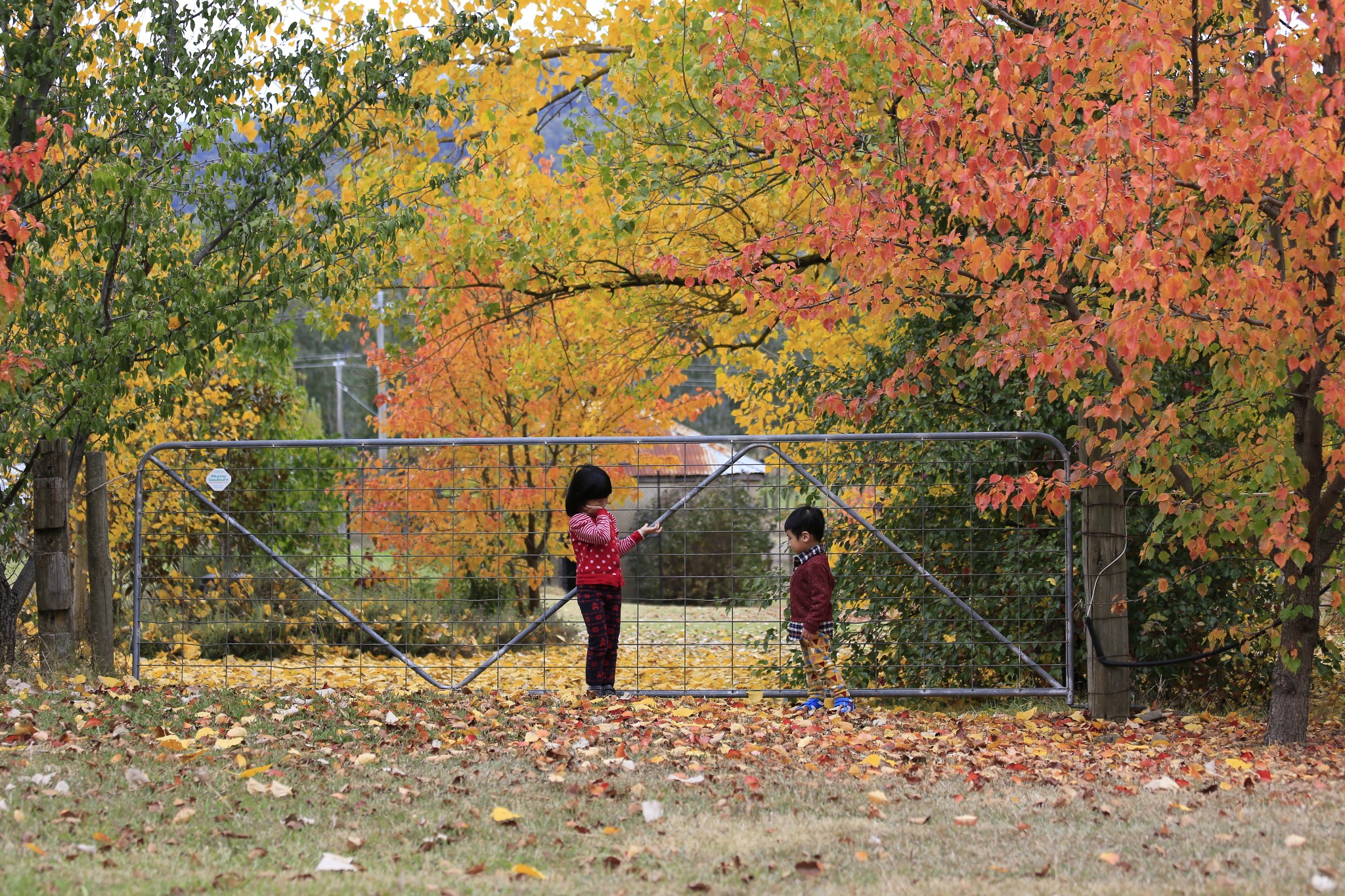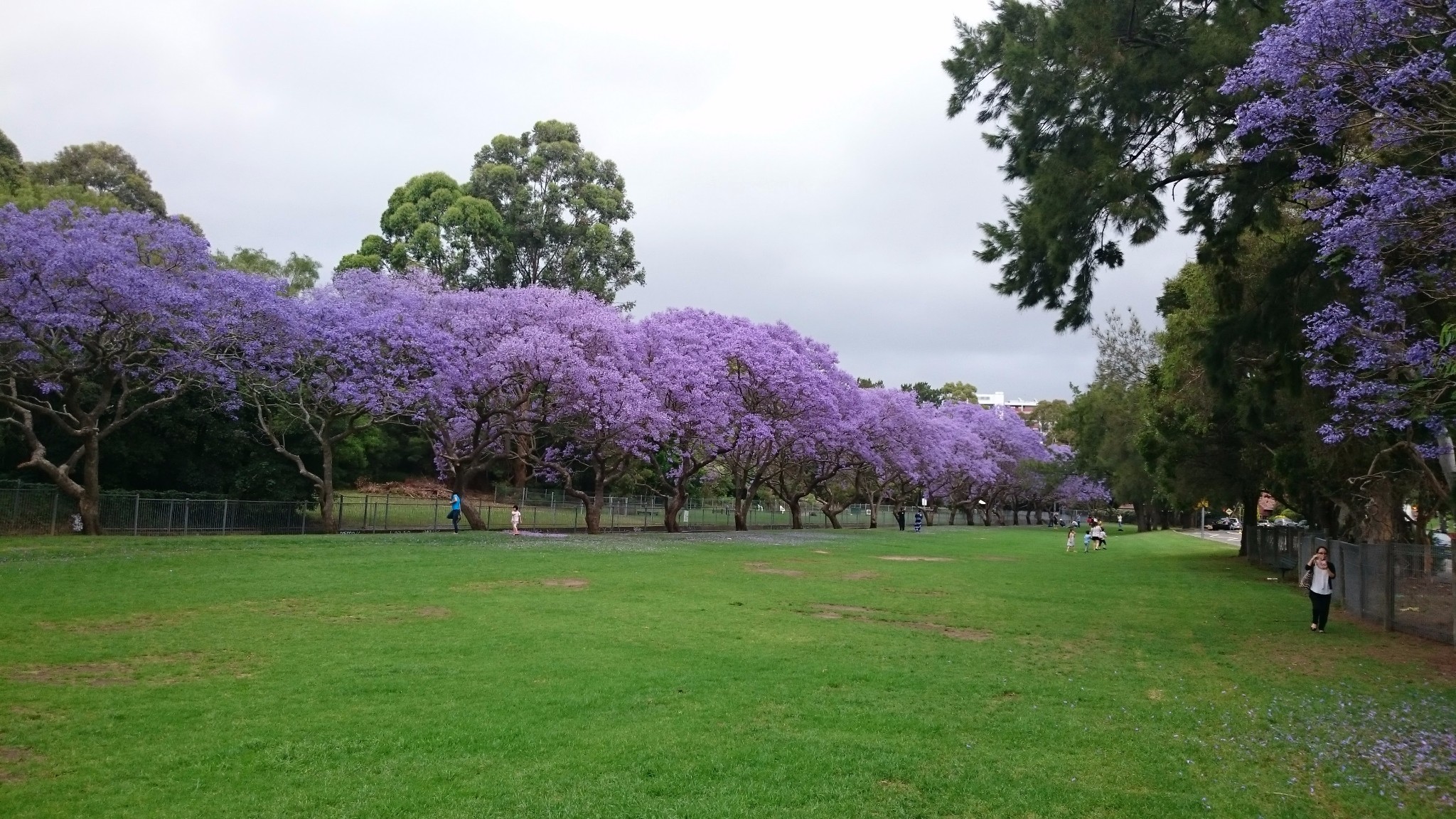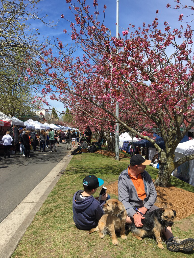 在蓝山劳拉小镇Leura的樱花树大街里购物