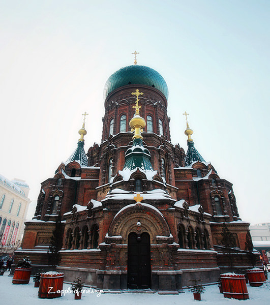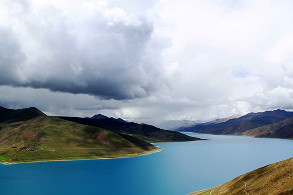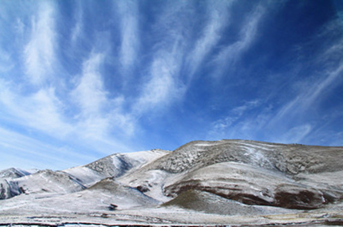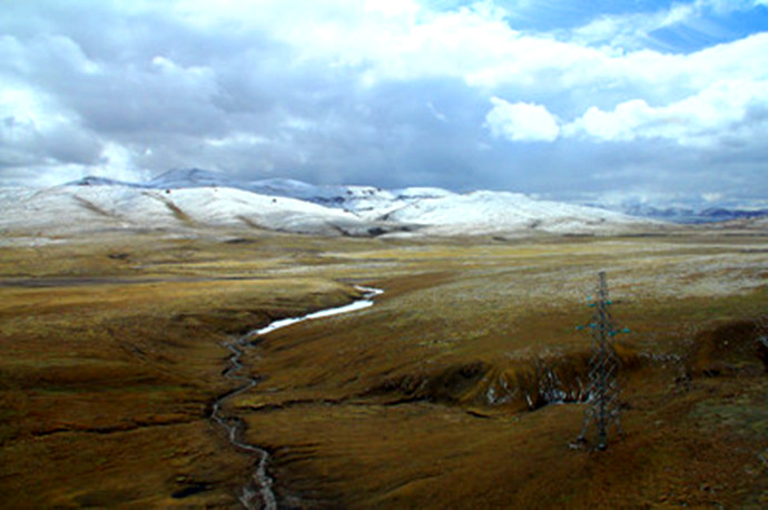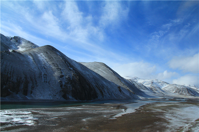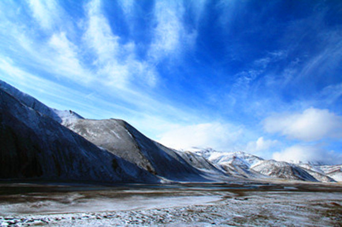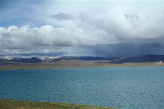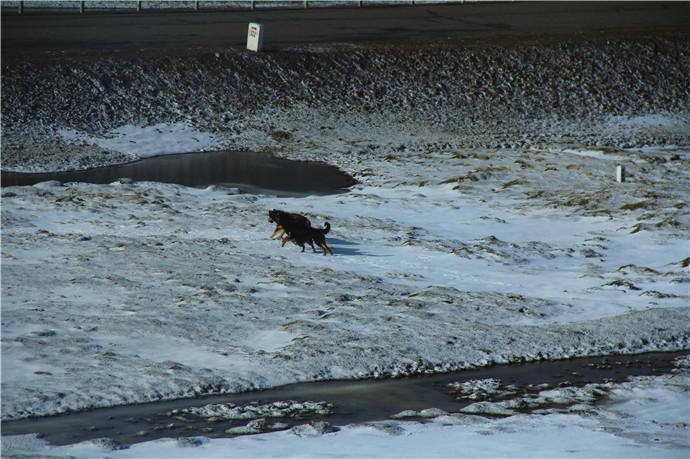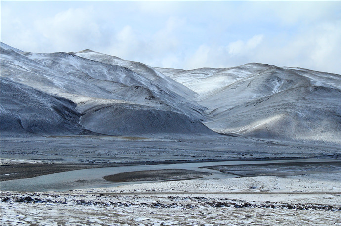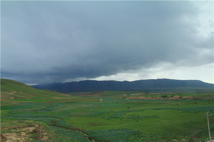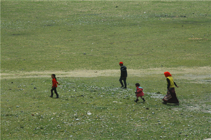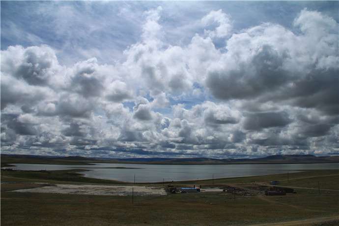 青藏高原的天气就是这样,这边晴空万里,那边冰天雪地,再往前终于看到了村庄