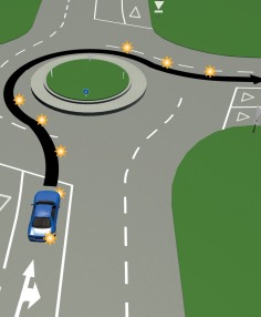 二来,在圆形环岛内,也切勿任意变换车道,因为很可能你旁边车道还有同时并进的车辆,这是他们的一种习惯。你以什么车道进入环岛,离开也必须保持在那个车道,并且务必提前打方向灯以使后方来车了解你的行驶方向。