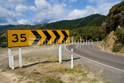 (图中路牌为前方弯道的建议过弯速度提示,以此可以判断弯道的幅度)