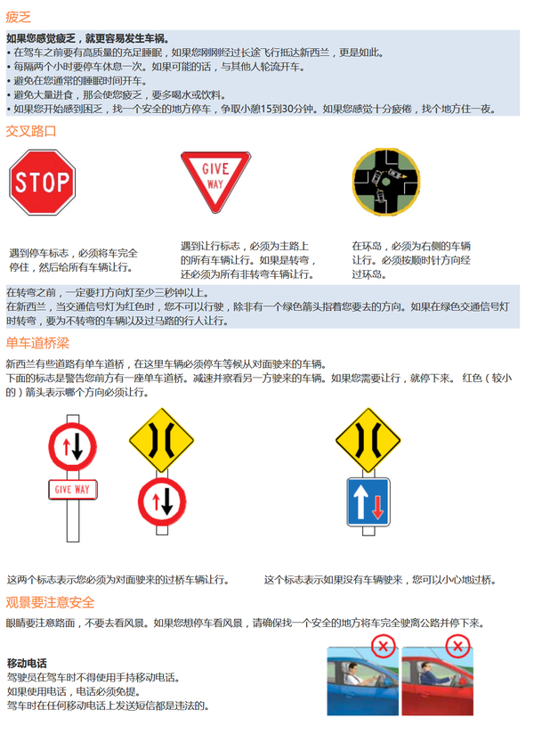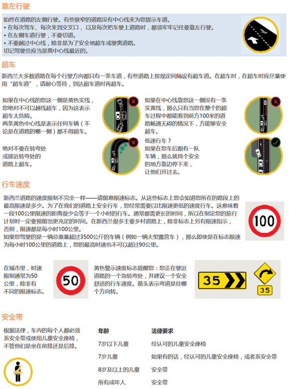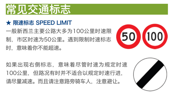 新西兰的高速就两车道,去行回行各一道,偶尔会出现超车道。高速限速100,城区50,介于二者之间时限速80。上下浮动20%。当地人开车很快,但是一进城都会自觉降速到50,哪怕是在这个城市连个人影都看不到的时候如果高速上开车发现后面有一队车的时候,可以靠边先停下来让后面的车先走。有时候前面有开的比较慢的车,对面也没有车开过来,如果发现前面的车打了左转向灯但其实旁边并没有左拐道或停车的地方,它其实是在告诉你,超车吧!