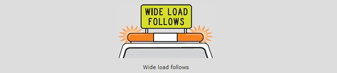 当一辆车承载过大,可能会有警车陪同,警车闪烁黄色顶灯并有标示,以警示其他道路使用者。如果警车是在大车之前,标志可能会写:Long load follows(超长车在后) 或 Wide load follows(超宽车在后);如果警车是在大车之后,标志会写:Long load ahead(超长车在前)或 Wide load ahead(超宽车在前)