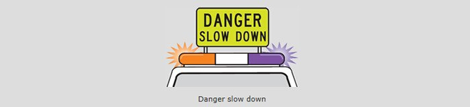 如果有特别巨大的车辆,则将会有两辆警车在其前,第一辆警车会闪烁黄色和紫色顶灯并带有:Danger slow down(危险,慢行)的标志。第二辆警车会闪黄色顶灯并带有:Wide load follows标志