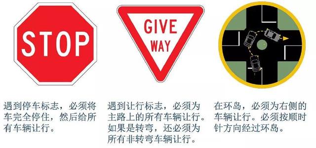 基本上进入环岛,辅路进主路,支道进主道,在路口都会出现“Give Way”的标识,地面则出现大型的倒三角形。只要出现这个标识,你都需要向右边的所有在你即将要走的行车路线上的车辆让路。如果遇到没有红绿灯也没有“Give Way”标识(没有红绿灯在非城市地带很常见),也无任何标志的路口,那就同样按照右边车辆享有行驶优先权的原则。如果右边的路上游十几台车在行驶,就得等这数十辆车都走完你再拐出去。