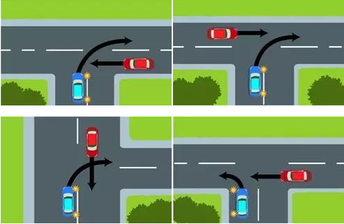 (3)拐弯让直行、大弯让小弯。在无红绿灯或实线的路口,拐弯车辆要让直行车辆、拐大弯的车辆要让拐小弯的车辆。