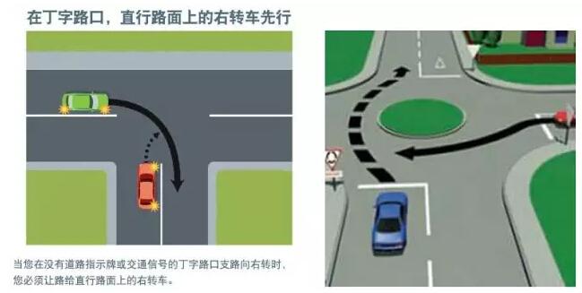 (4)丁字让直行、环岛让右行。在丁字路口,直行路面上的车(无论对方是直行还是拐弯)有优先权。准备进入环岛时,必须让右手方向的车先行。