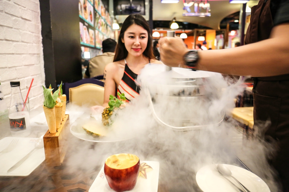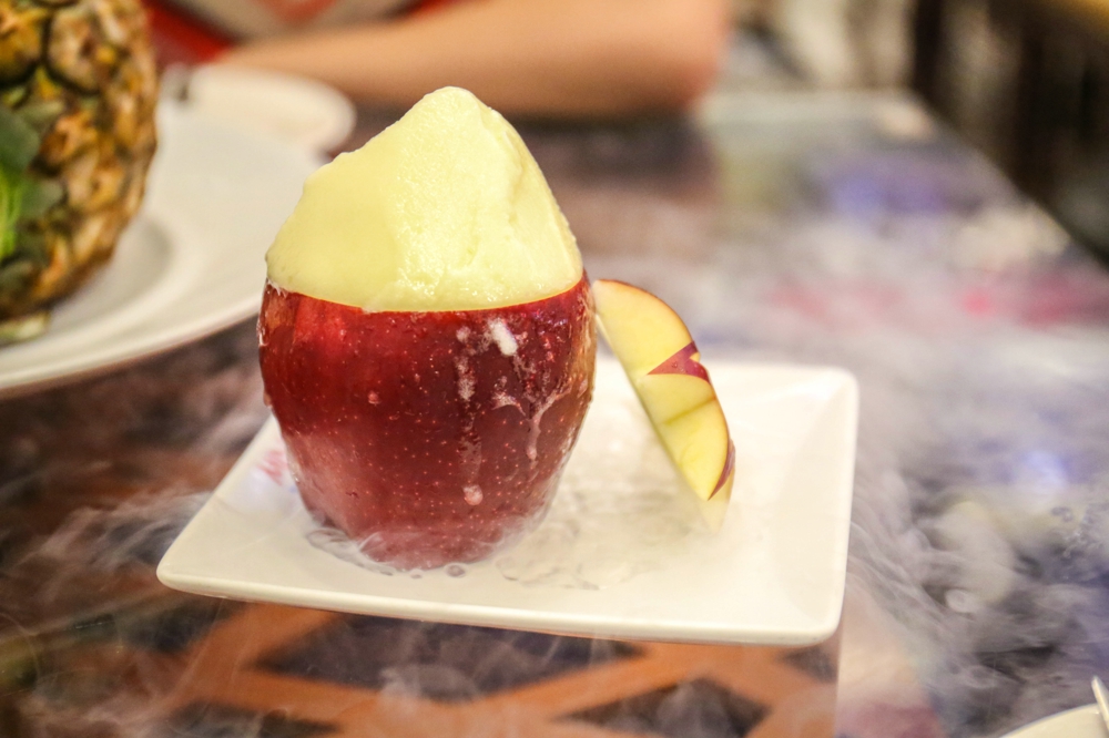 Mix家主打fushion风格,连续4年获得泰国最佳餐厅称号,众多菜式造型和口味都十分出众。苹果雪葩是必点菜式,新鲜原料由服务员现场用干冰制作,场面壮观,仙雾缭绕。