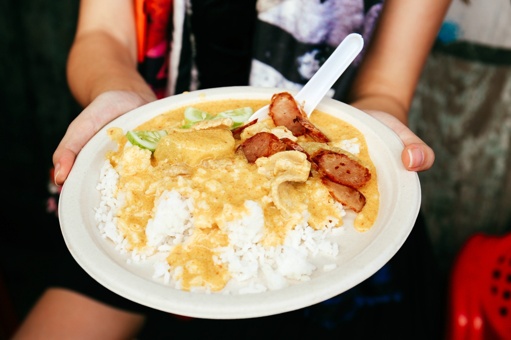 要说唐人街最地道,最有路边摊代表性的,当然要数Khao Gaeng Jake Puey这家专卖咖喱饭的摊位了。开业到现在已经有70多年的历史,各个媒体都有报道过。