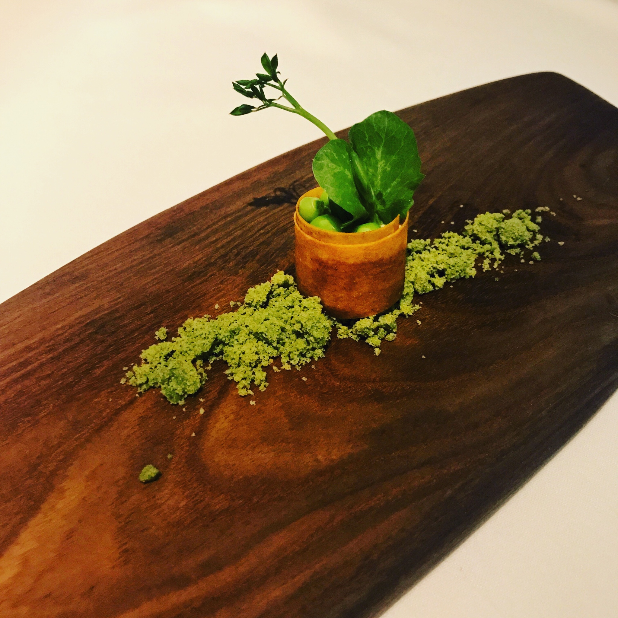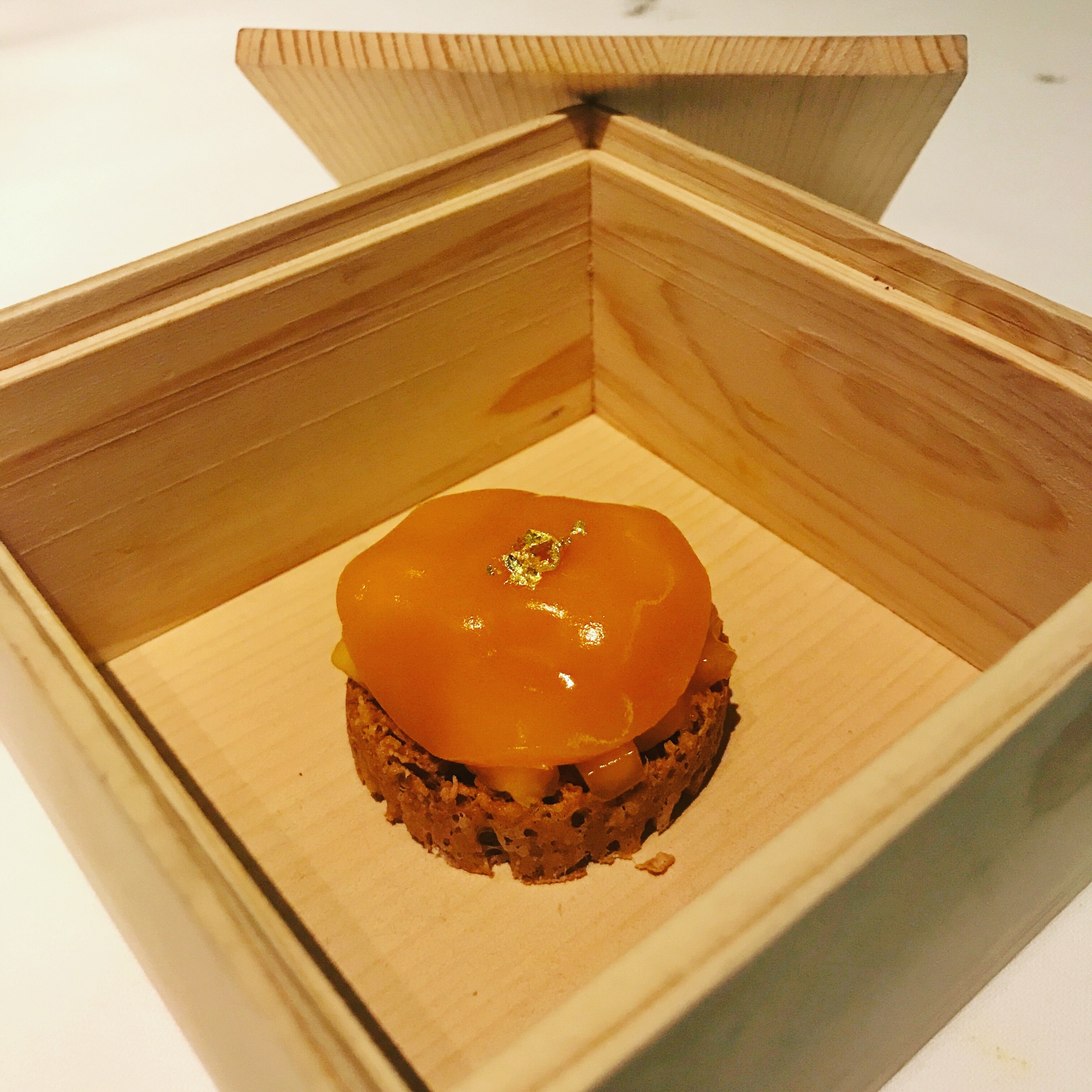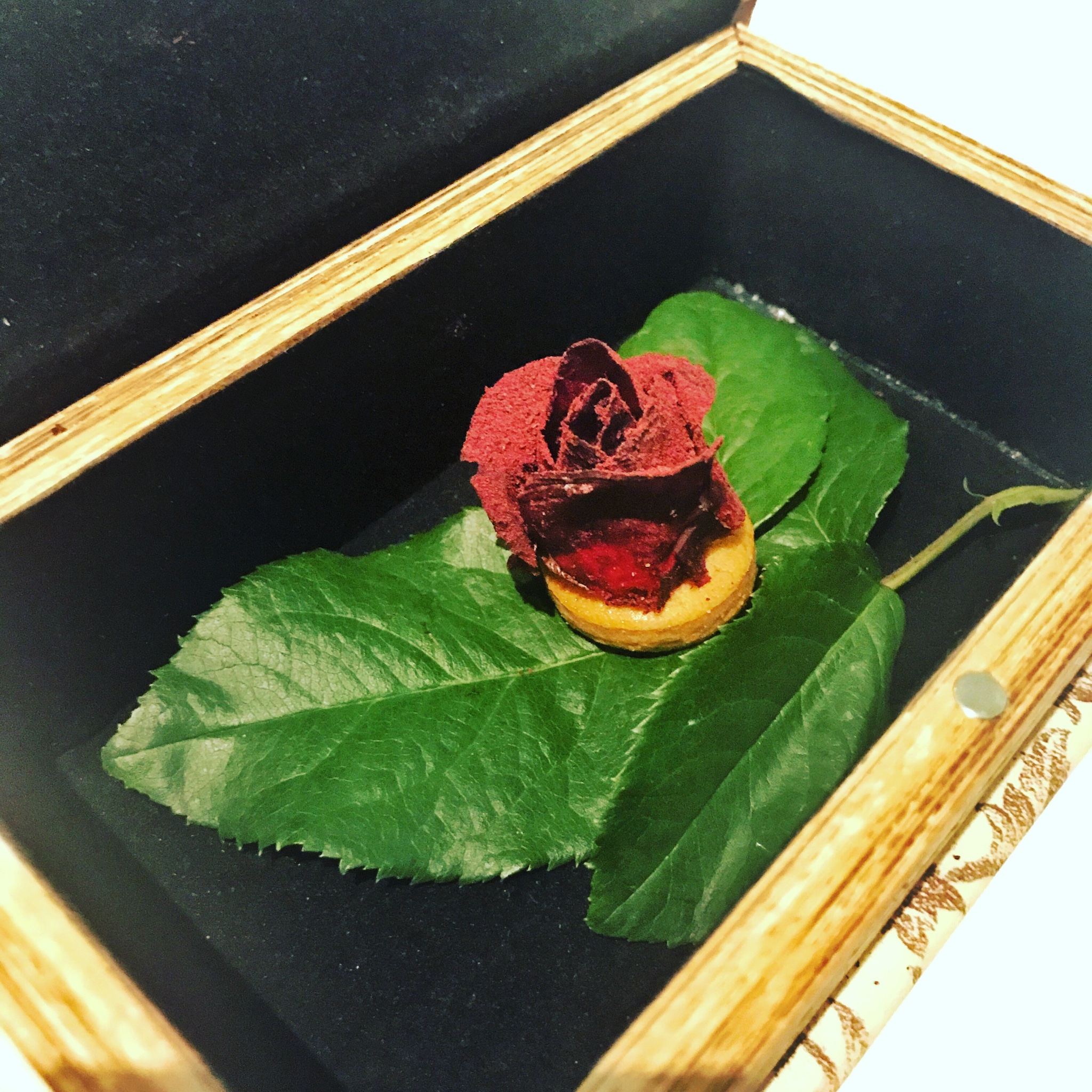 Gaa这是最后一道甜品,中间的叶子形状的东西,右边是巧克力,左边是口感非常像植物的一种东西,结合的非常好,没有任何违和感。