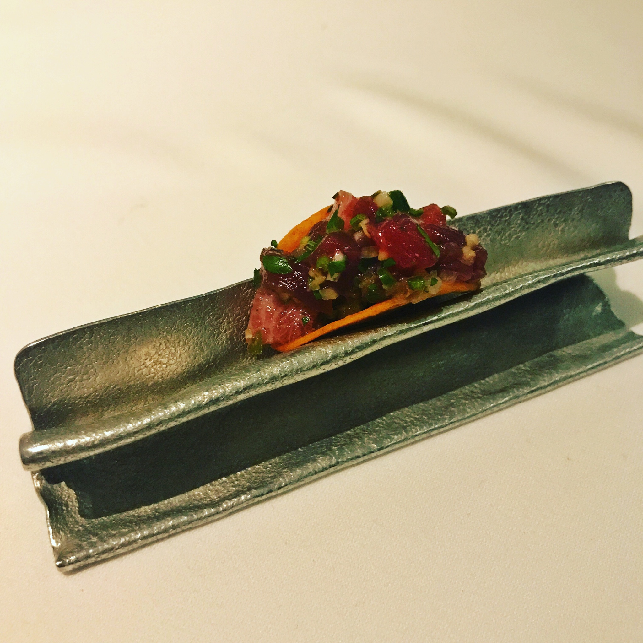Gaggan Bangkok这里面的肉是金枪鱼,后面还有另一道金枪鱼toro做的寿司,个人感觉最佳。