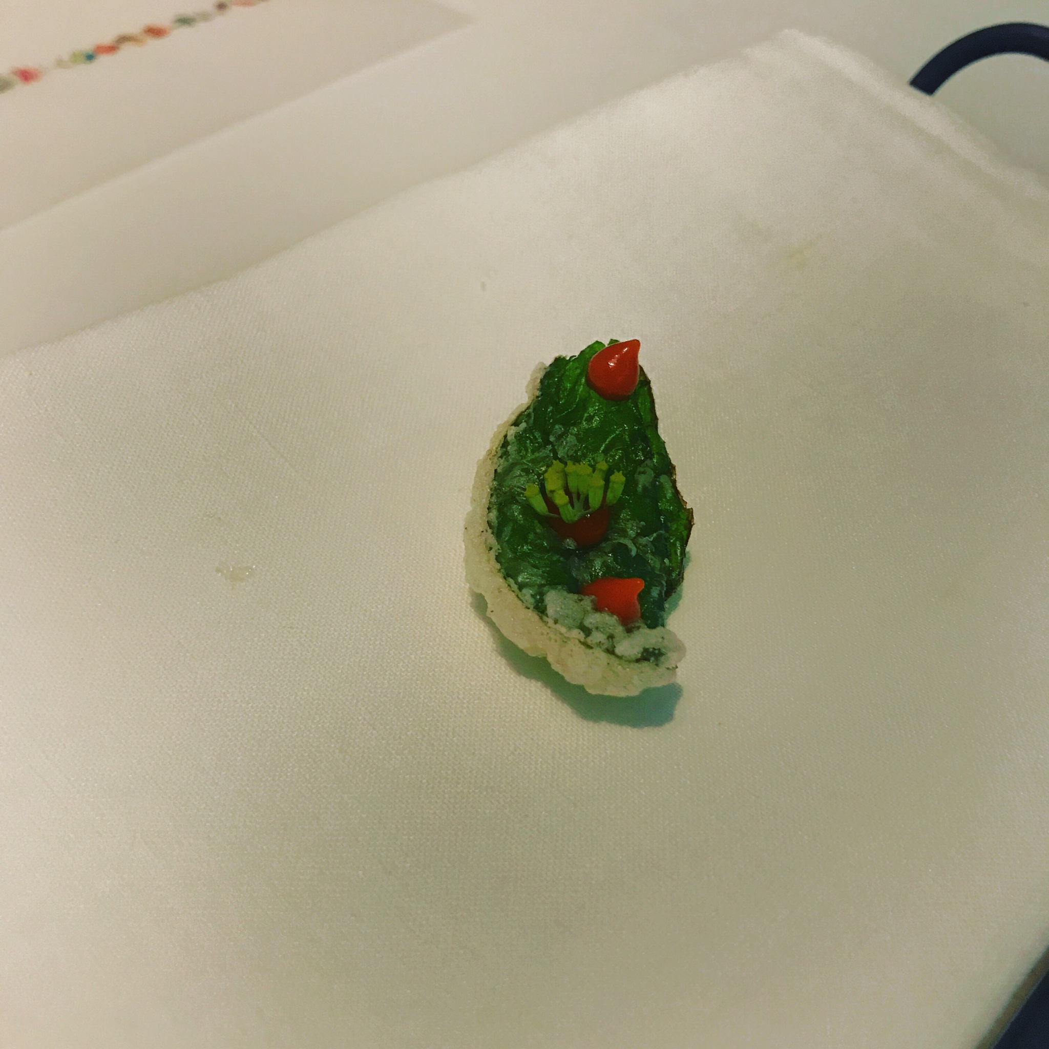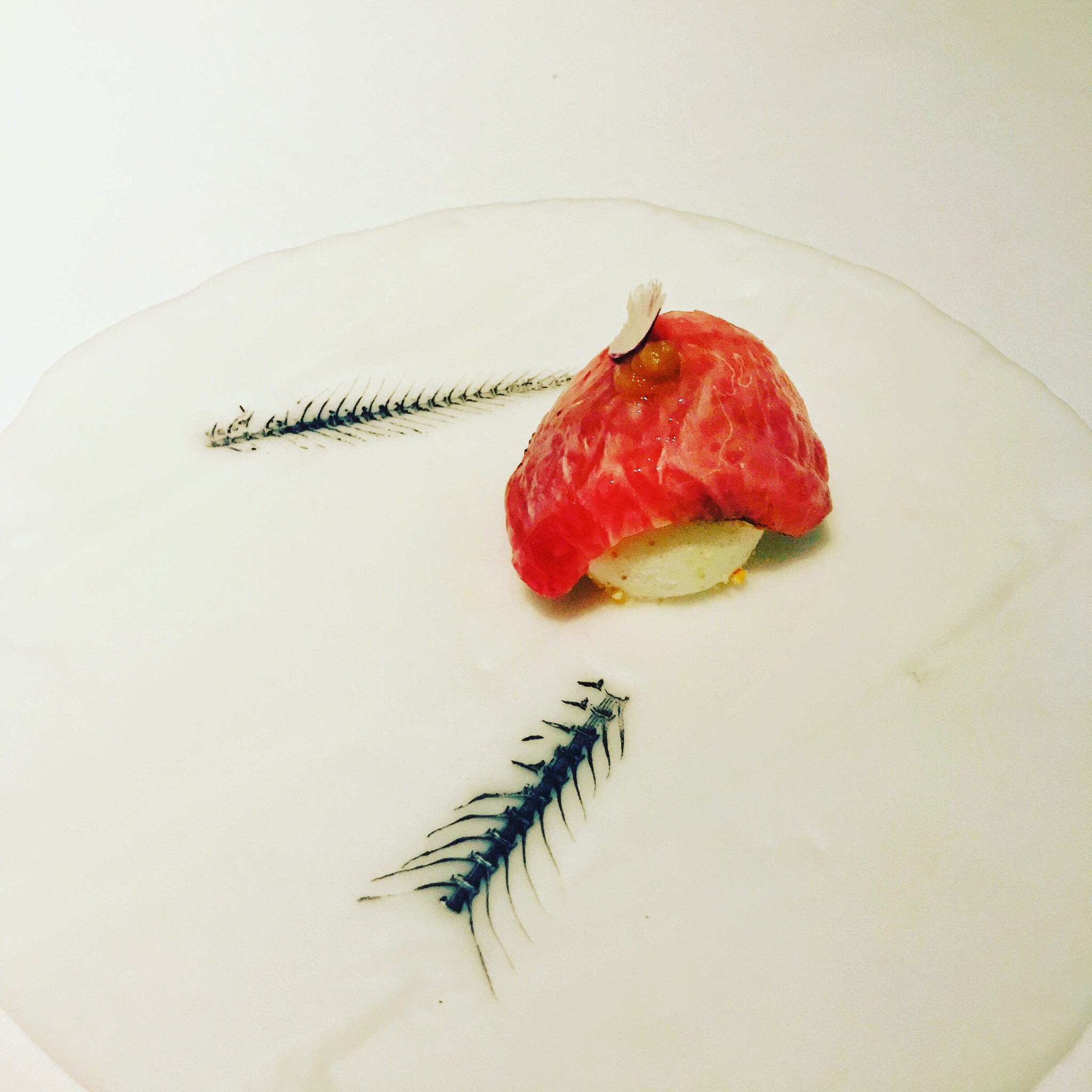 Gaggan Bangkok这就是金枪鱼Toro做的寿司,下面其实不是米饭,而是一种泡沫口感的东西。