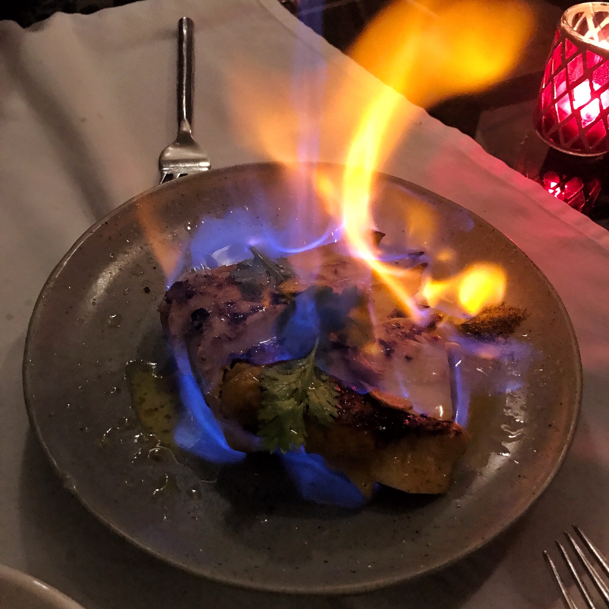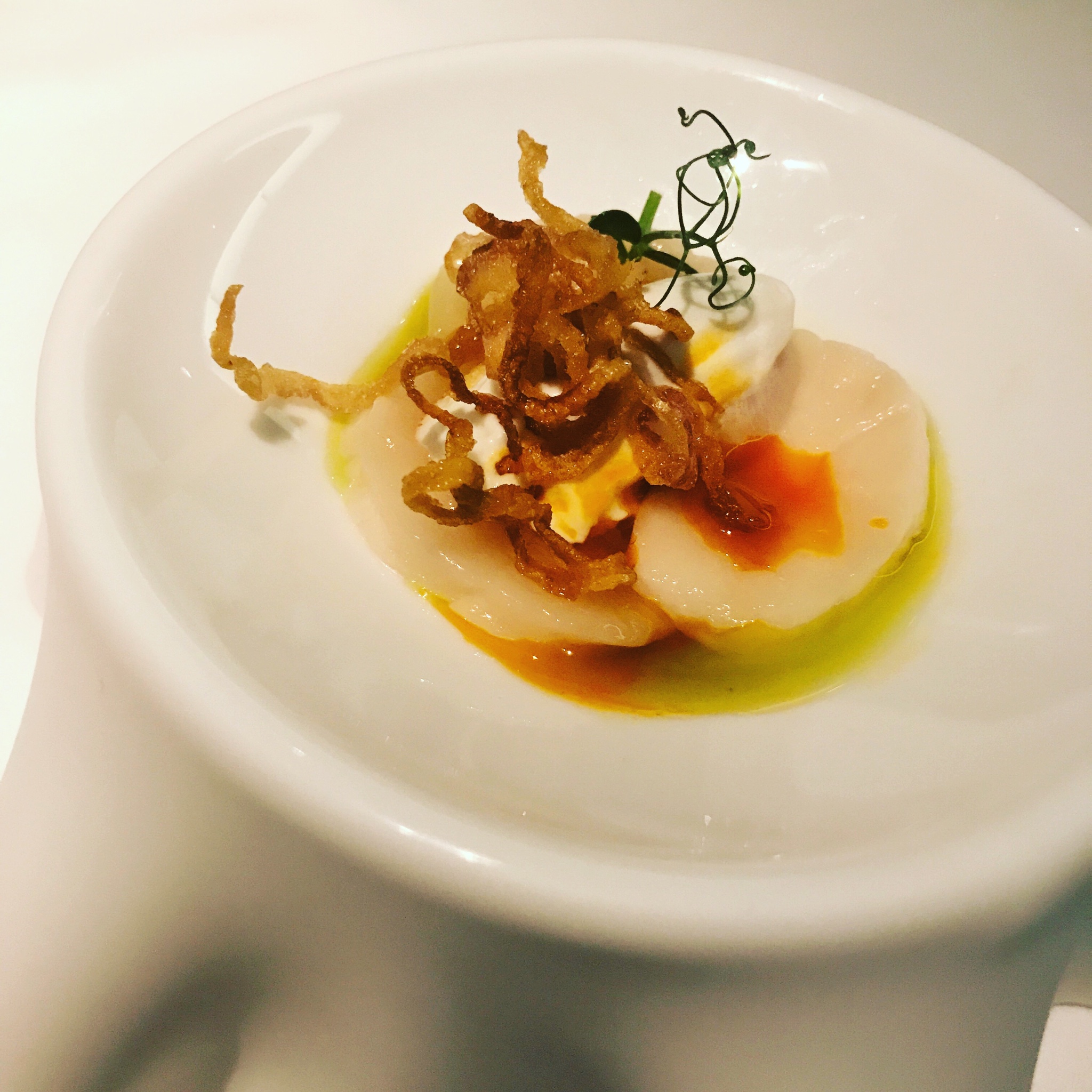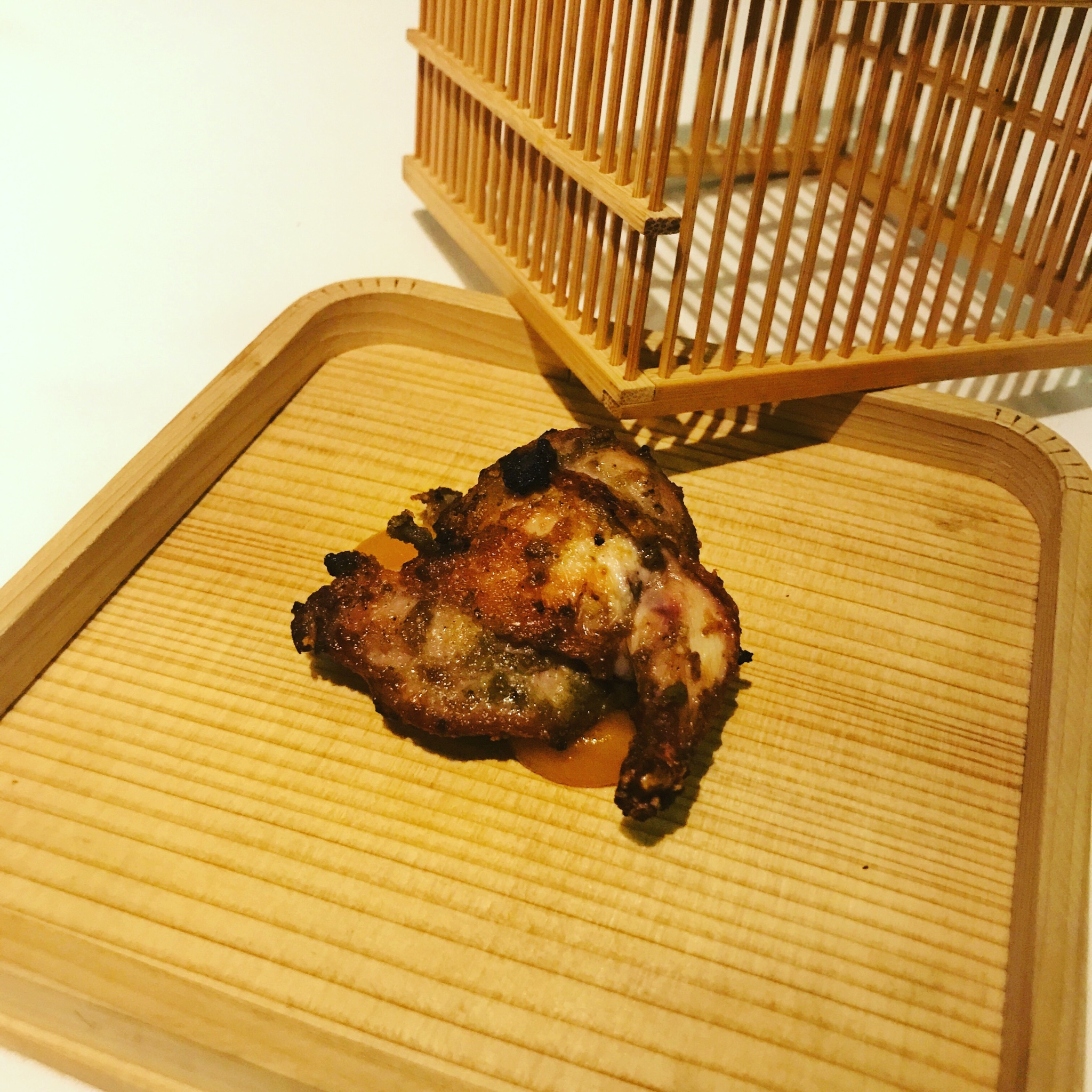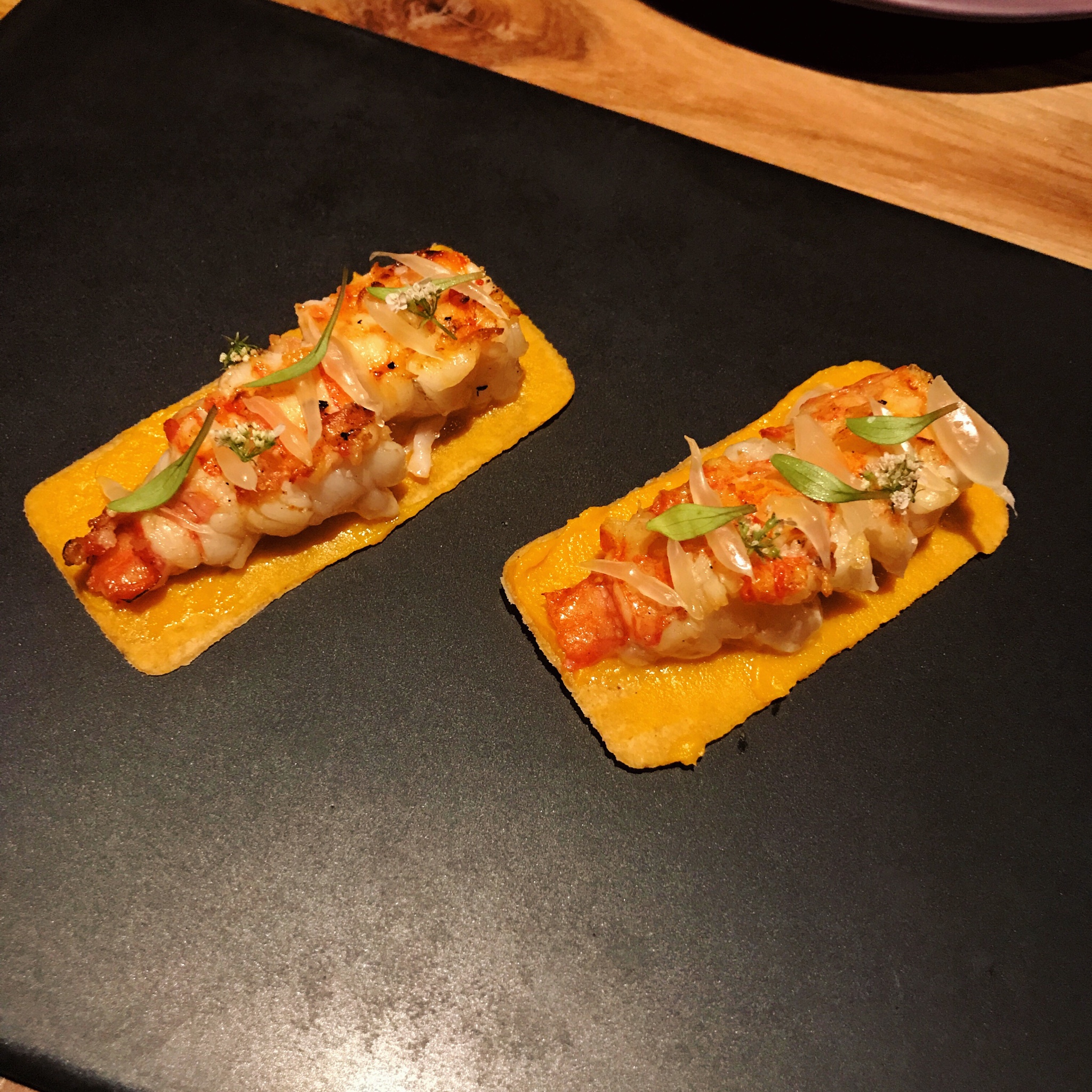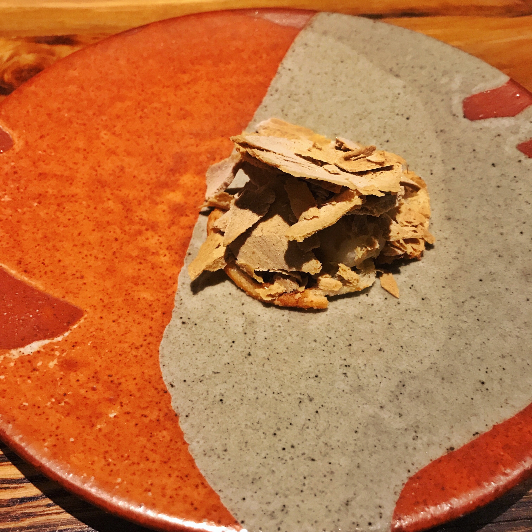 Gaggan Bangkok这个别看就是一个简单的虾头,后部的黄色部分,是餐厅做的一种酱,解说的时候提到里面有冬阴功成分,这个酱的味道很惊艳,想买,但是问了下不单独卖,也没有现成的。