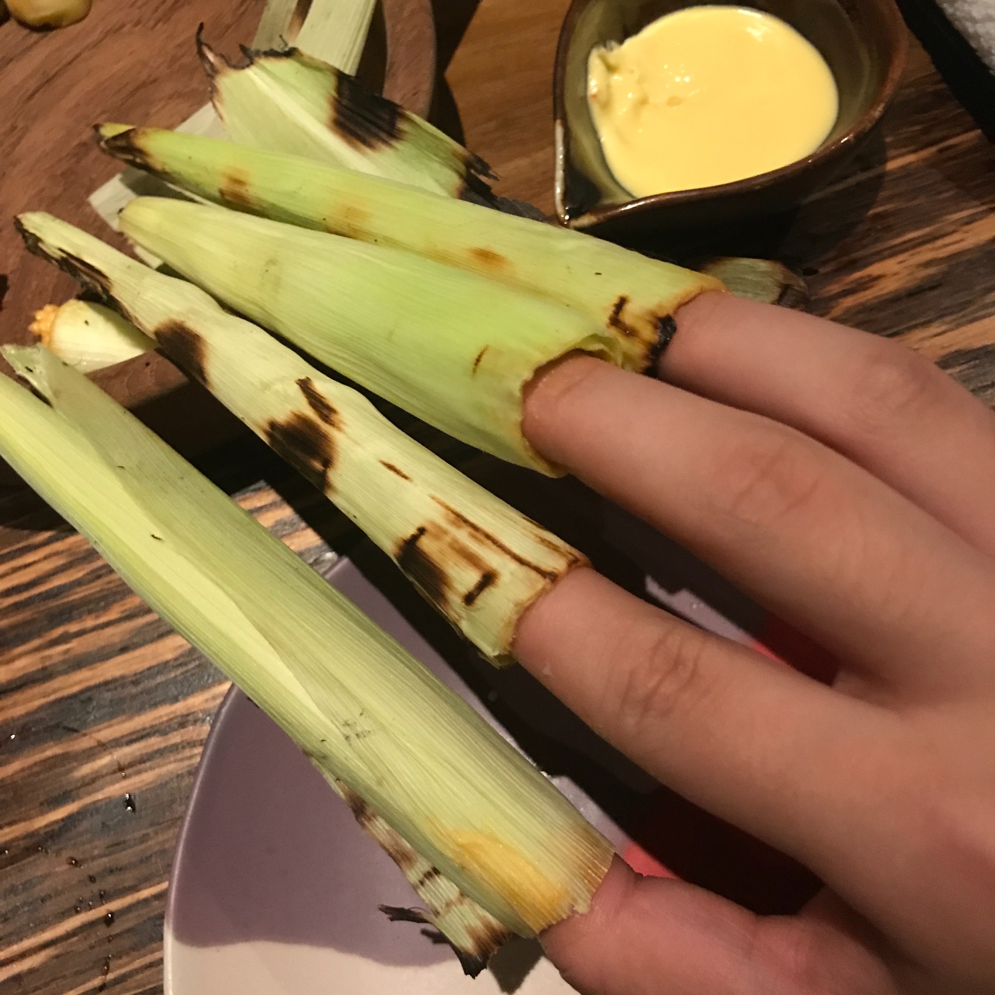 Gaa值得一提的是这道菜,玉米。玉米非常的小,小到可以直接全不吃掉,这个外面皮的宽度,差不多和手指一样,可以套在手上。