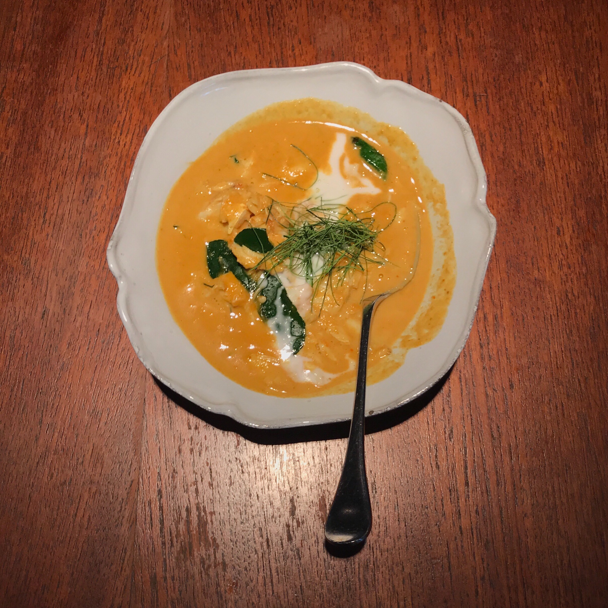 Nahm Restaurant @Hotel Metropolitan by COMO说的那道吃了两次的菜,就是这个,有略微的甜味,里面的白色东西是蟹肉。把黄色的汤汁浇到米饭上,真的能下一盆。下图为证。