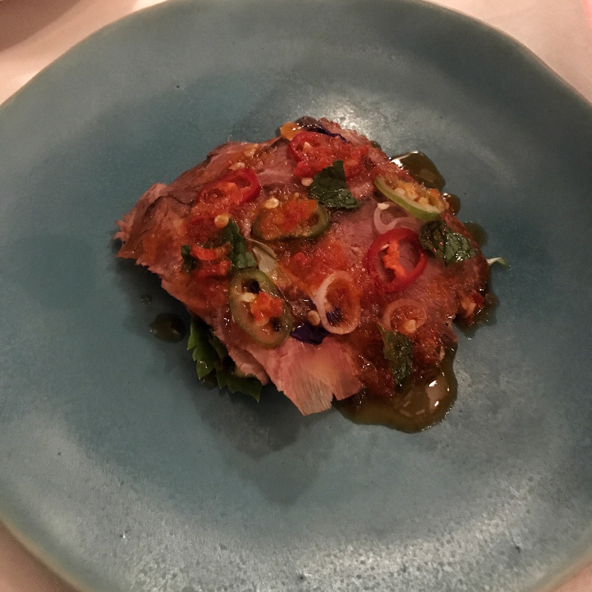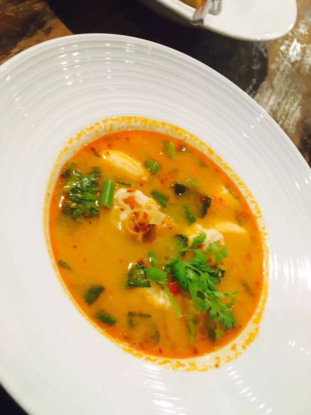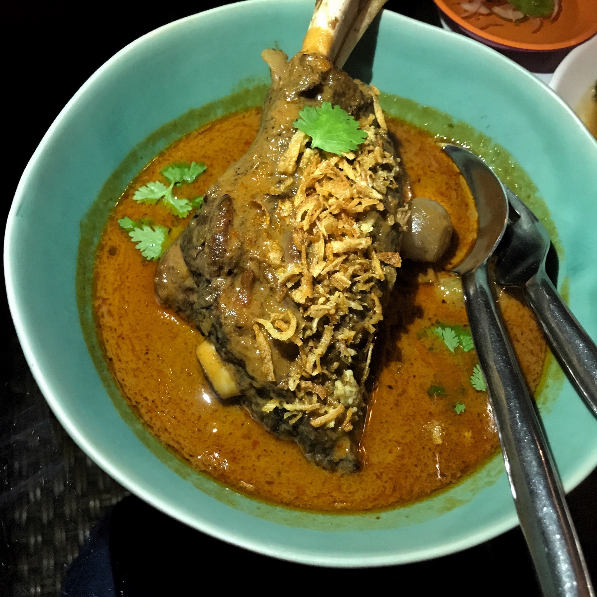 Issaya Siamese Club这家的印象不是太好,环境和菜的味道,都不是很推荐,但是推荐一道菜,如果朋友要去,就点这一道就可以了,就是上图这张,咖喱羊腿,汤汁也有些甜味,特别适合泡米饭吃,不比Nahm的那一道咖喱椰子蟹差。