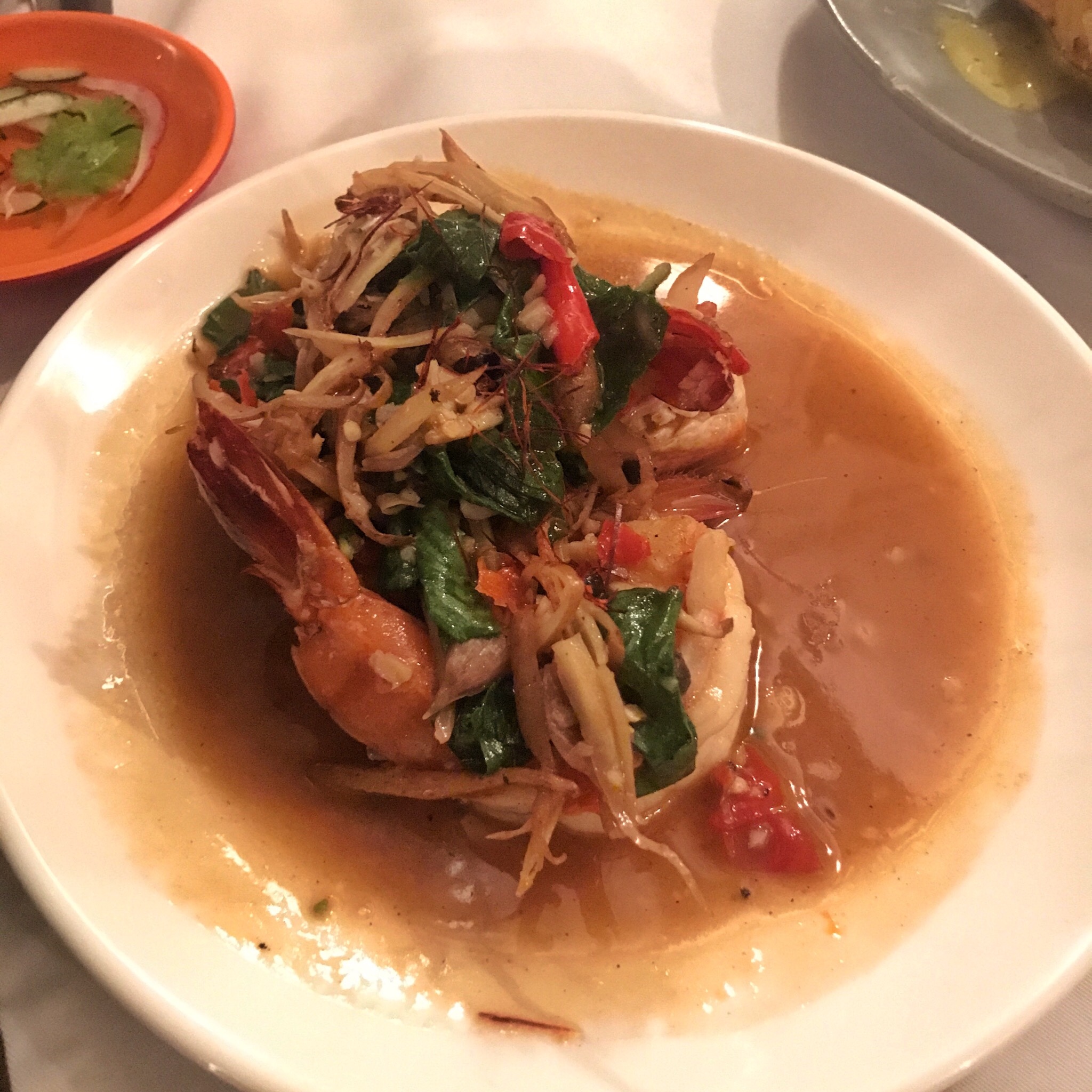 绝对是第一口觉得一般,第二口就开始停不下来的泰菜经典。价格便宜,而且很健康。如果加只螃蟹,味道更足~