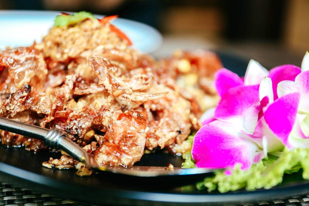 蒜香咖喱软壳蟹每一丝蟹肉都饱含香味,根本停不下来。
