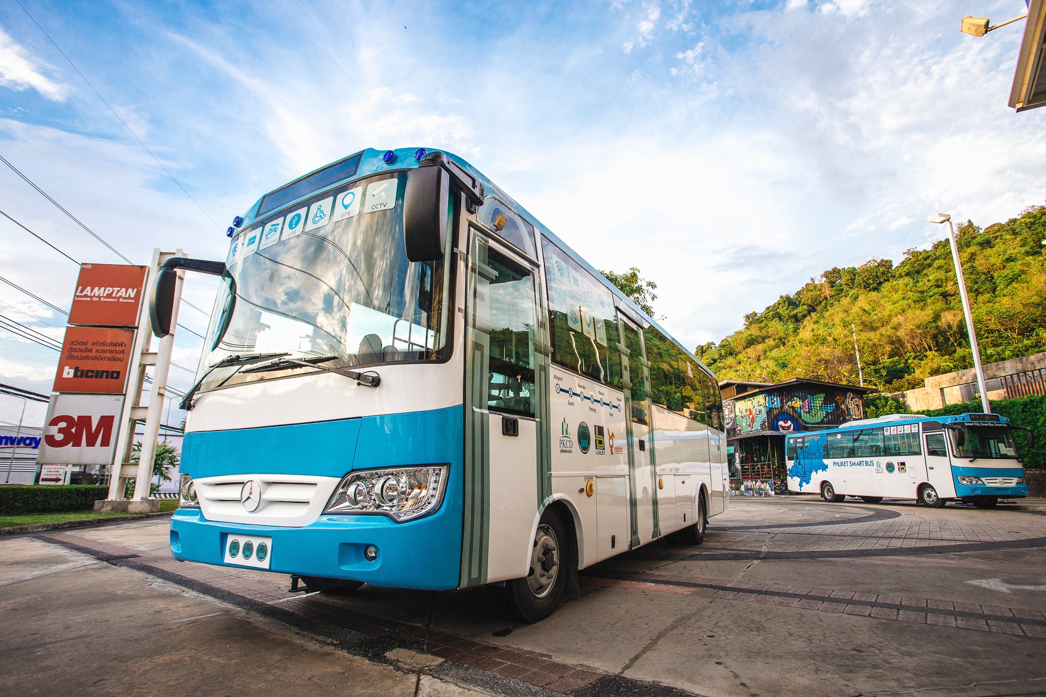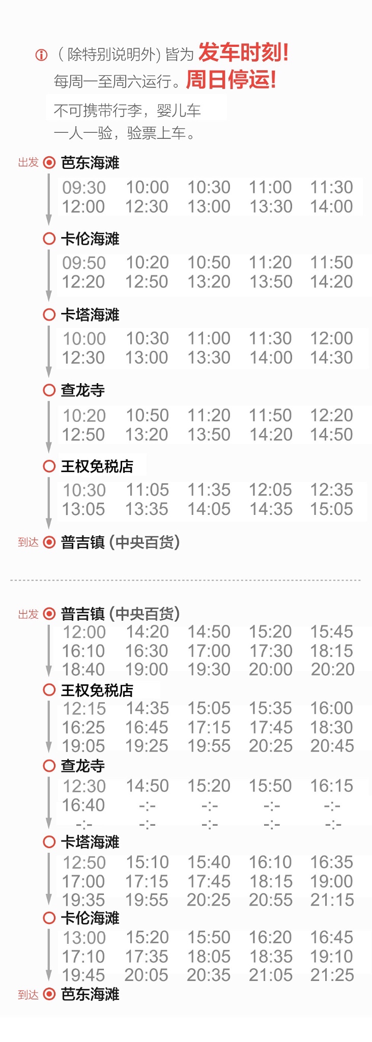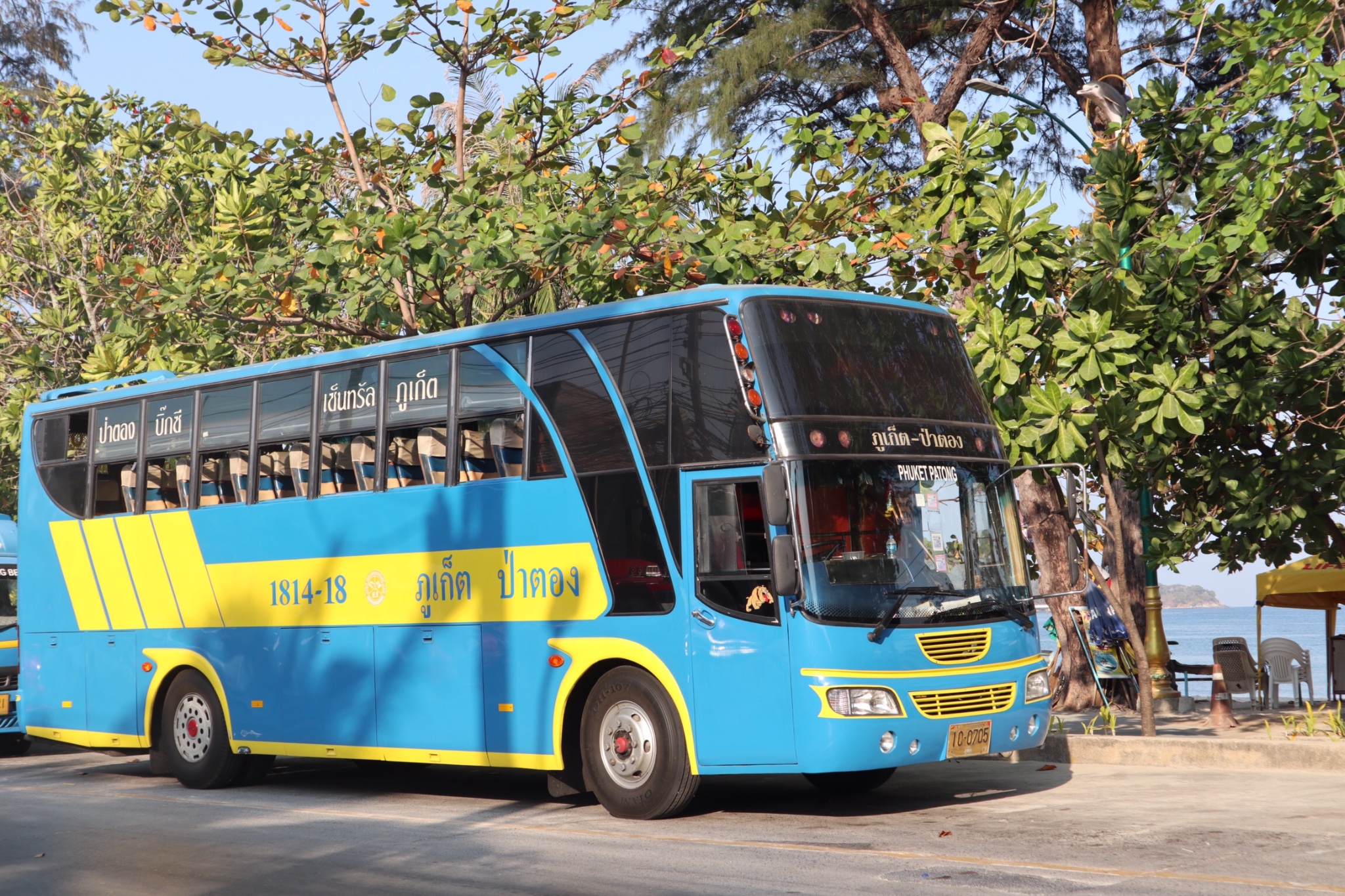 (2)下图这种公交巴士我是清早在芭 东海 滩回酒店时遇到的,始发站就在芭 东海 滩沿海一侧,问了司机30min一班车,最晚一班下午17点,在芭 东海 滩和普吉镇之间往返的