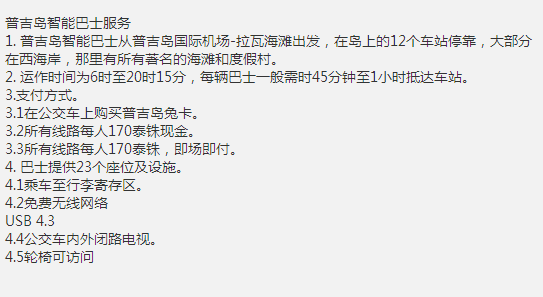 六、当地交通普吉岛 的公共交通设施是不太发达的,打车和当地特有的嘟嘟车都较贵,便宜的公交车等待时间长……这也是我考虑跟团的重要原因之一 。以下是我整理的交通要点( 附独家交通秘籍,出行前花了大量时间查询的 ):